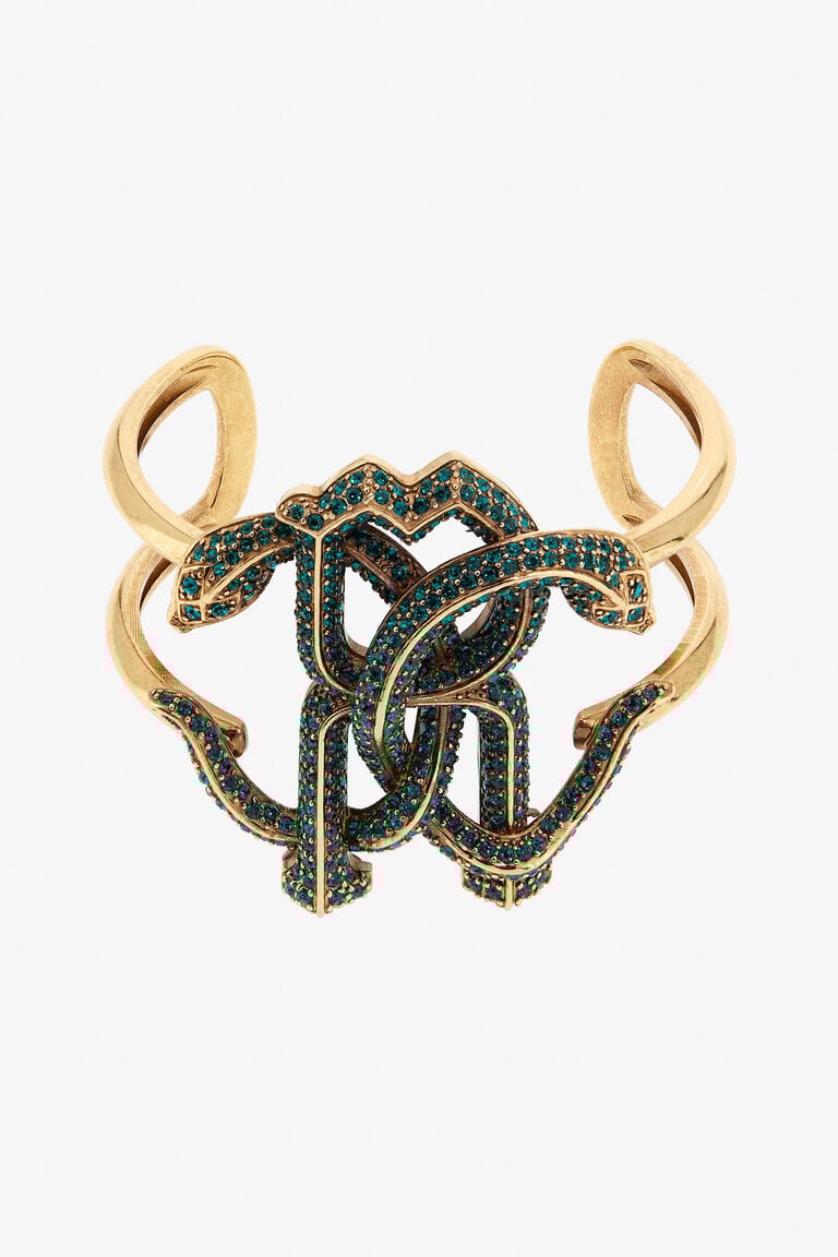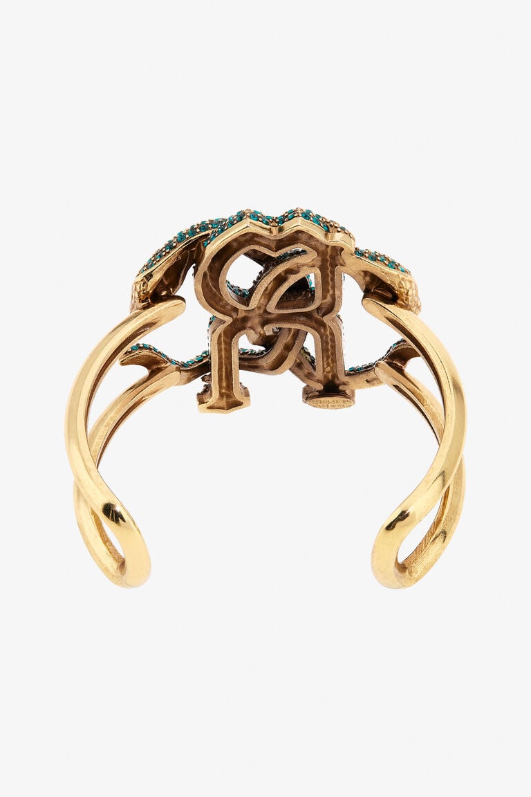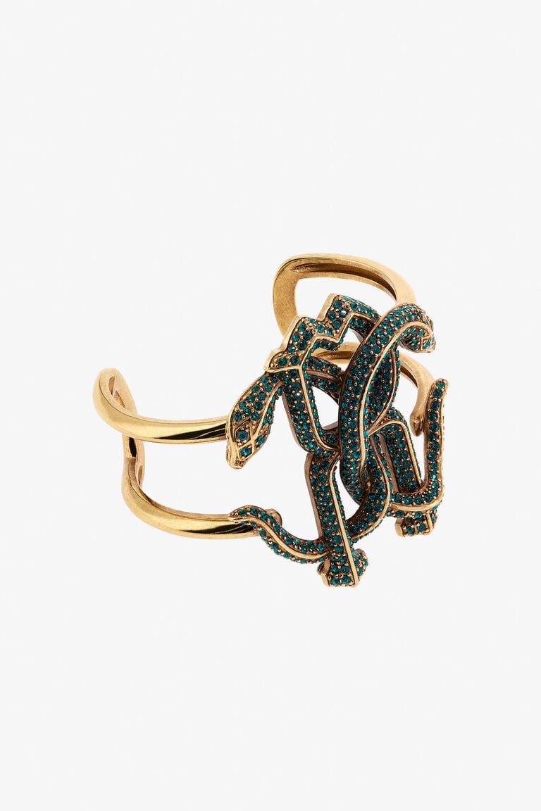This Bracelet with Logo RC by Roberto Cavalli embodies the brand's signature elegance and bold design. Featuring the iconic RC logo, it adds a touch of luxury to any ensemble. The gold-tone finish enhances its sophisticated appeal, making it a versatile accessory suitable for both casual and formal occasions. Ideal for those who appreciate refined jewelry with a statement-making edge.