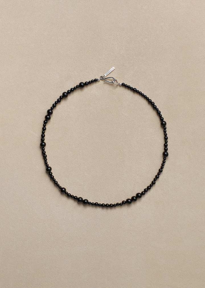 Handcrafted in 100% sterling silver with onyx beads (sizes vary 3-6mm). Measures approximately 16 inches in length. Made in Los Angeles.