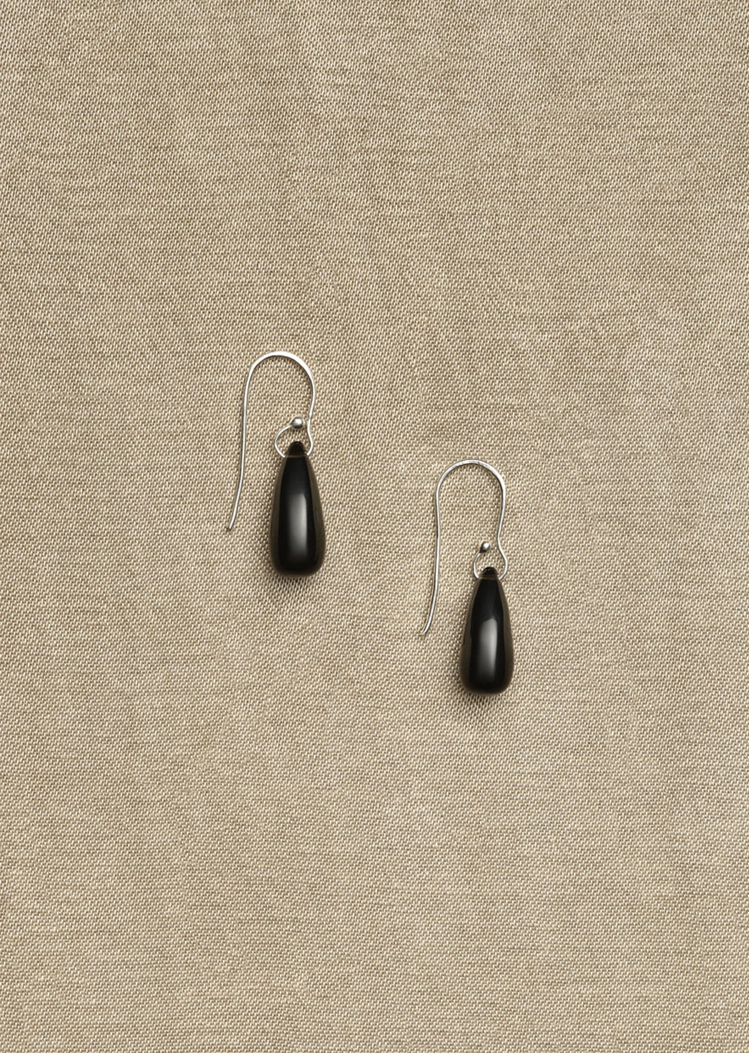 Handcrafted in 100% sterling silver with hand-carved onyx teardrops (29.2mm drop, 18.2mm stone). Made in Los Angeles.