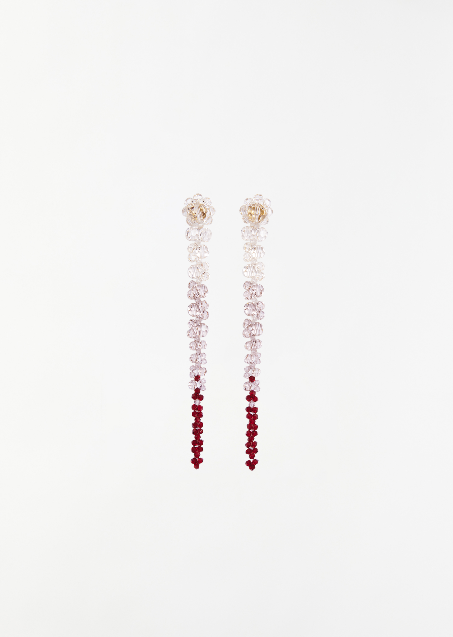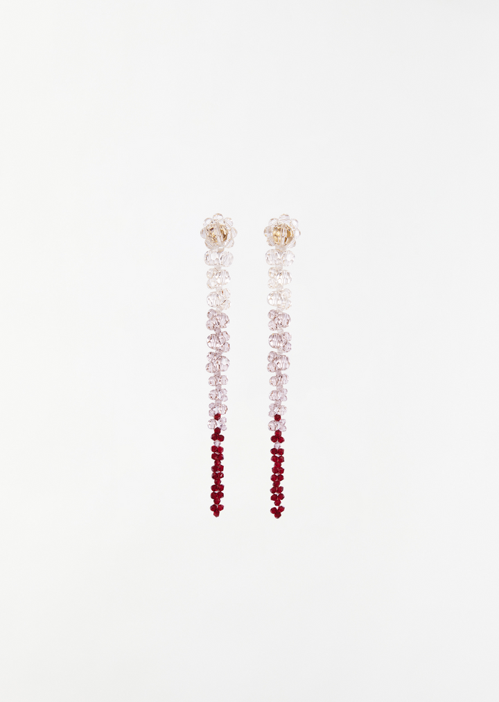 These Simone Rocha nude ombre drop earrings feature a delicate beaded daisy at the base, crafted from shimmering glass crystals. The elegant gradient effect and push-back closure make them a standout accessory.