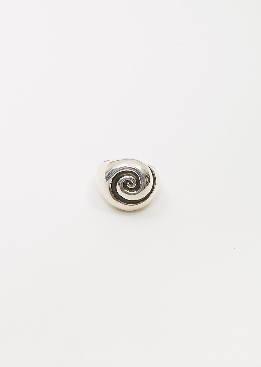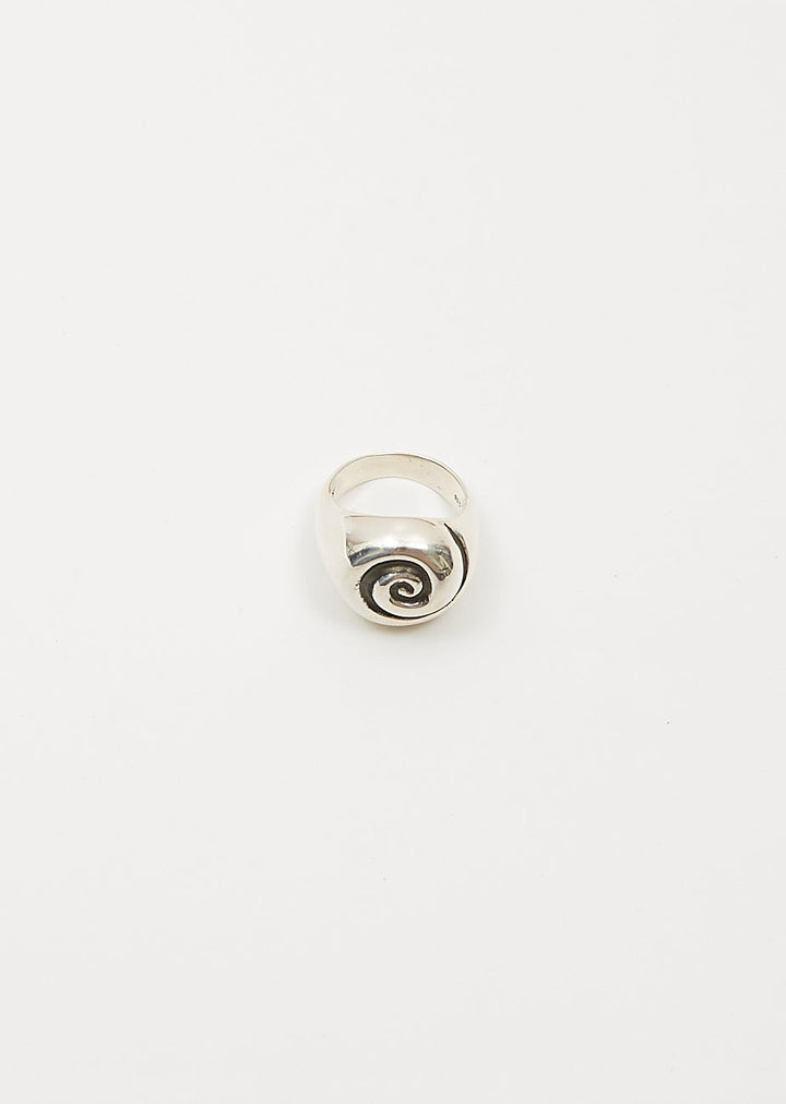 This sterling silver ring by Sophie Buhai takes inspiration from the organic shape of a shell. Its sculptural design and polished finish make it a timeless statement piece.