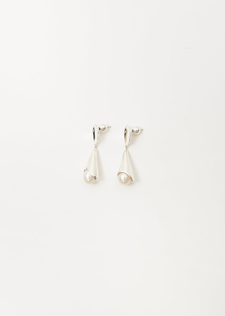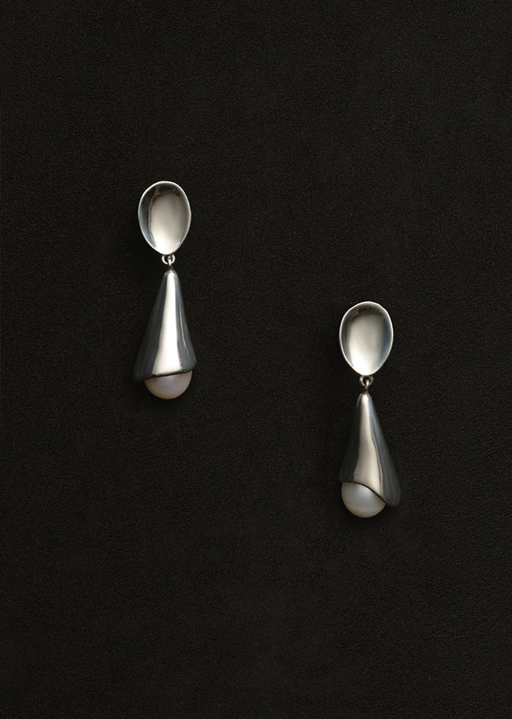 These elegant drop earrings by Sophie Buhai feature a freshwater pearl delicately peeking out from a sleek sterling silver frame. The pair offers a sophisticated and modern aesthetic.
