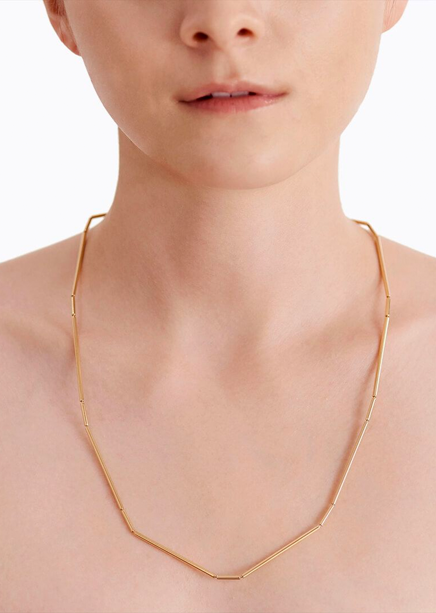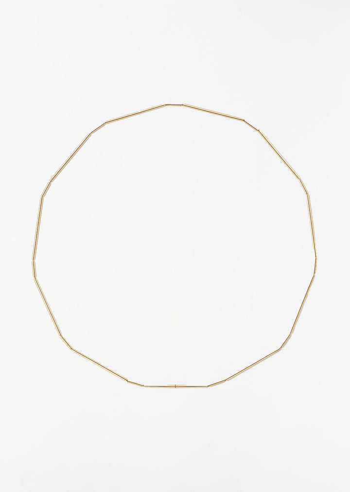 This bead chain necklace by Shihara alternates between 4cm and 1cm gold tubes, creating a striking, geometric aesthetic. The concealed screw clasp ensures a sleek and refined finish.