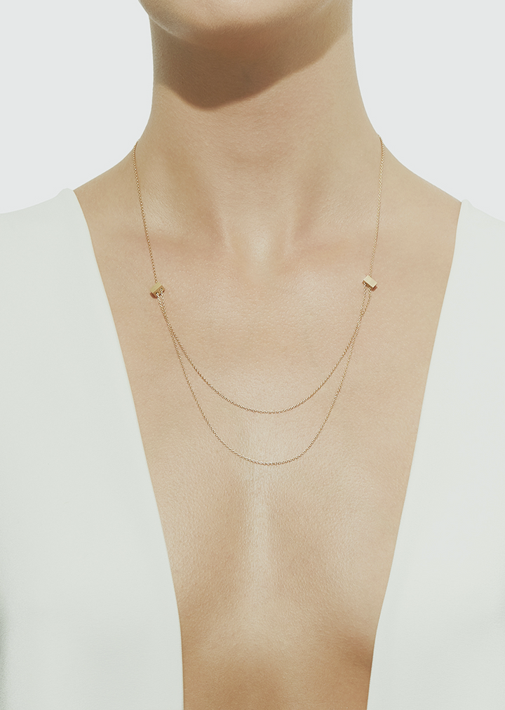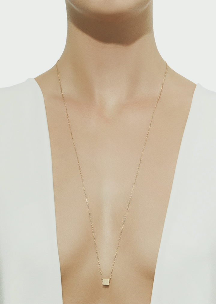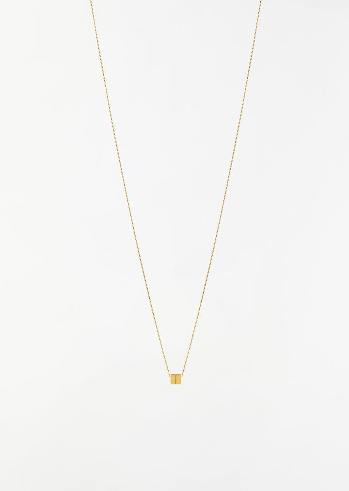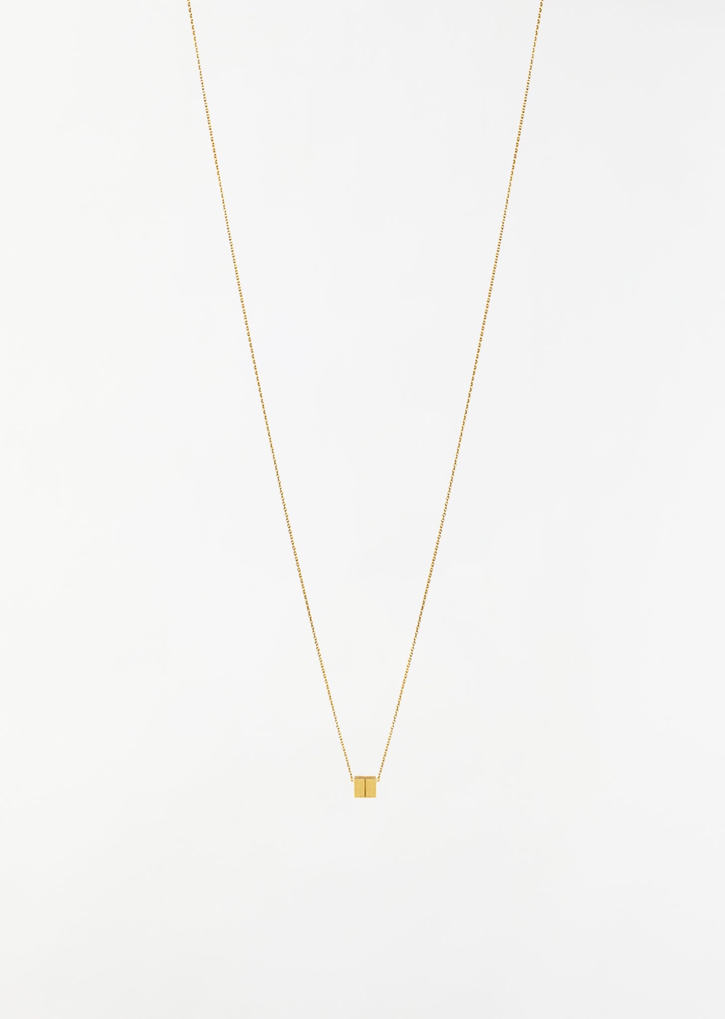 Handmade in 18k yellow gold with a matte finish. Chain measures 800mm; cube dimensions: 3.6mm x 6.24mm x 3.8mm. Made in Japan.