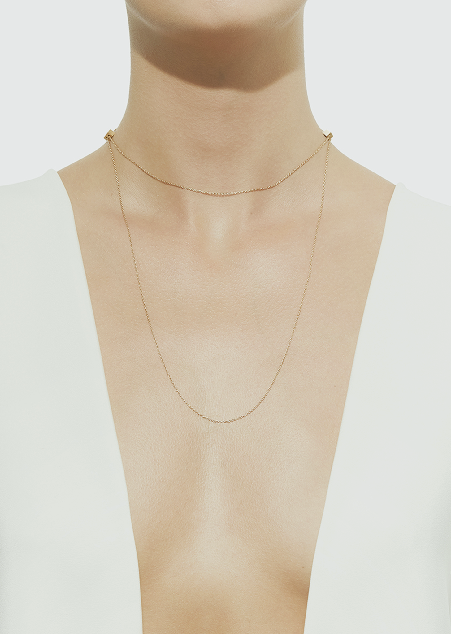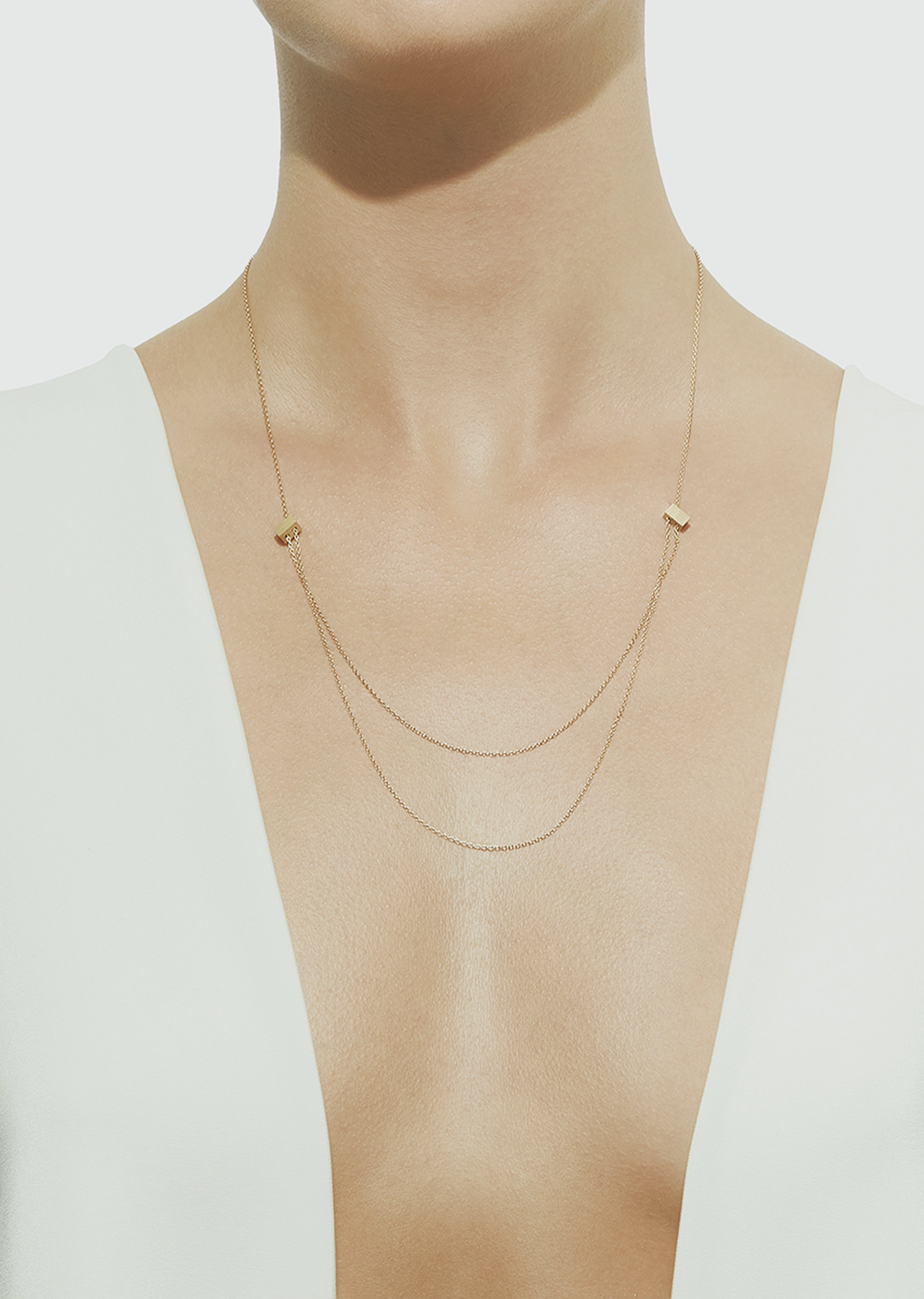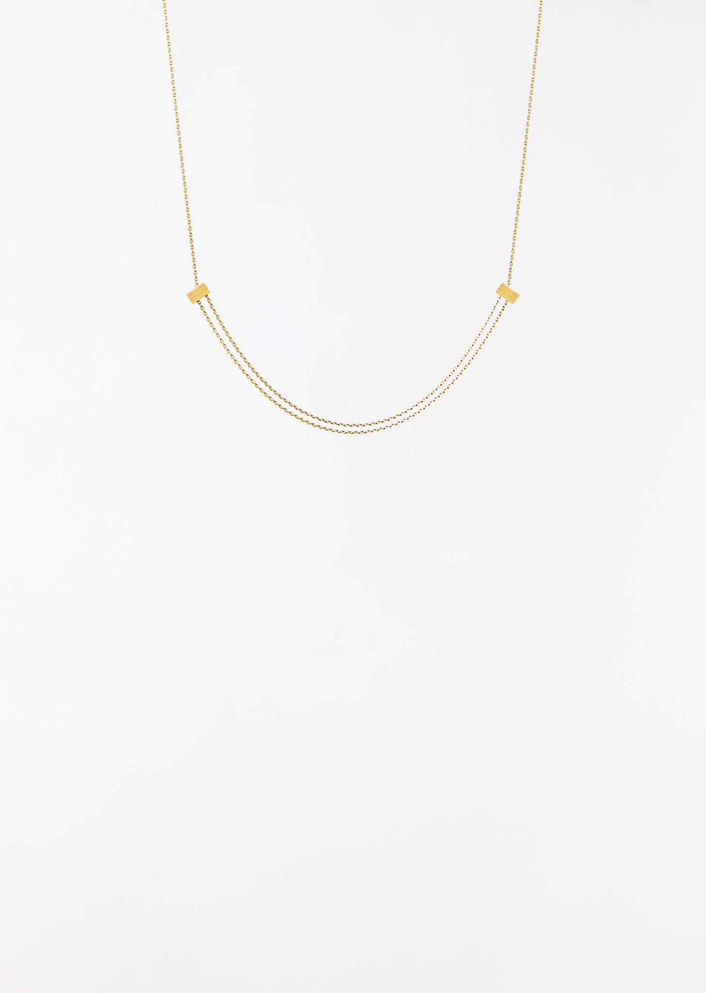 Handmade in 18k yellow gold with a matte finish. Chain measures 800mm; cube dimensions: 3.6mm x 6.24mm x 3.8mm. Made in Japan.