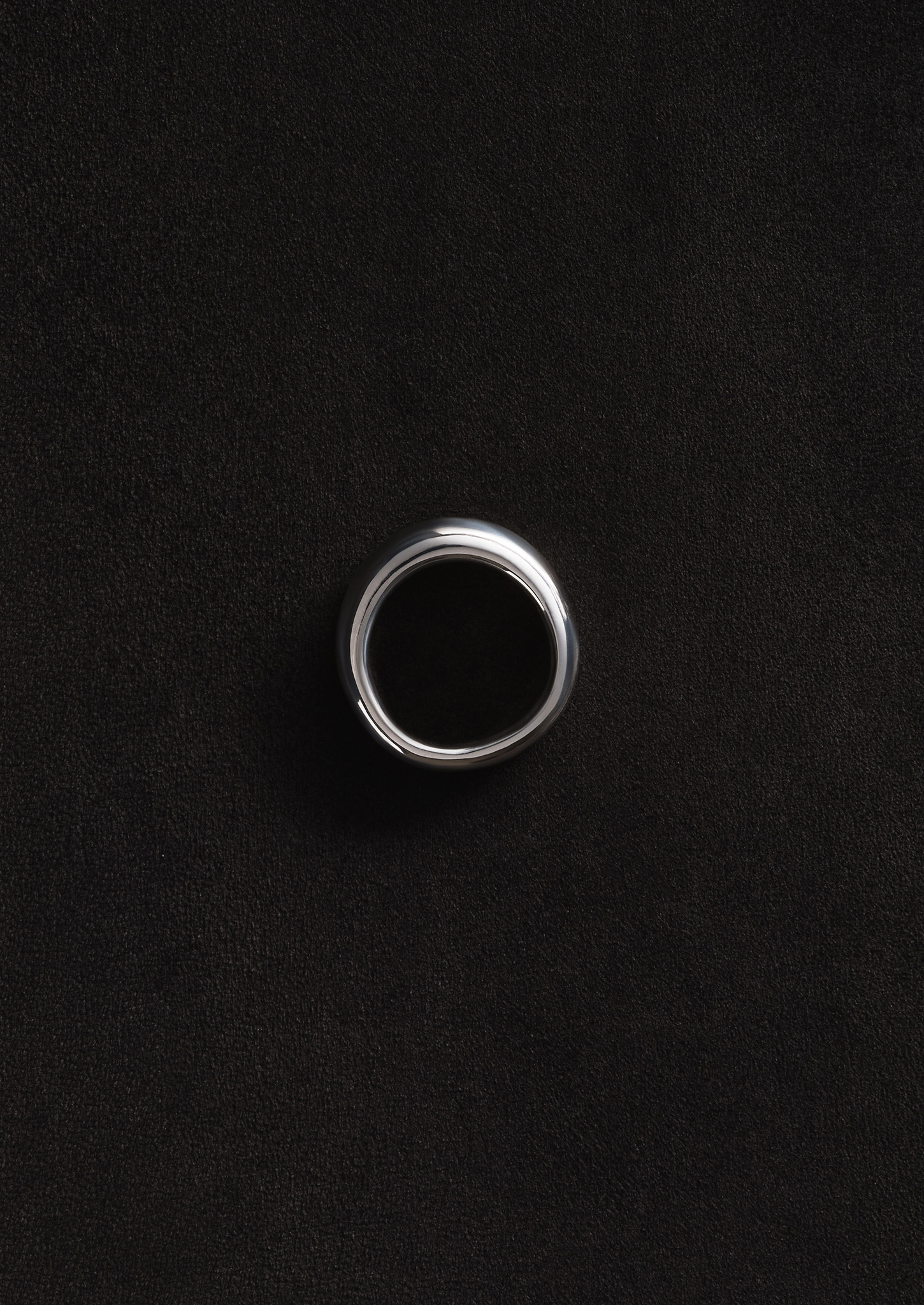 This Sophie Buhai Sculptural Band Ring by Sophie Buhai is a bold statement piece, crafted in sterling silver with a minimalist yet sculptural design. The smooth, fluid curves of the band create a modern aesthetic, making it the perfect piece for those who appreciate avant-garde elegance. It is designed to be worn as a stand-alone statement or stacked with other pieces for a more personalized look.