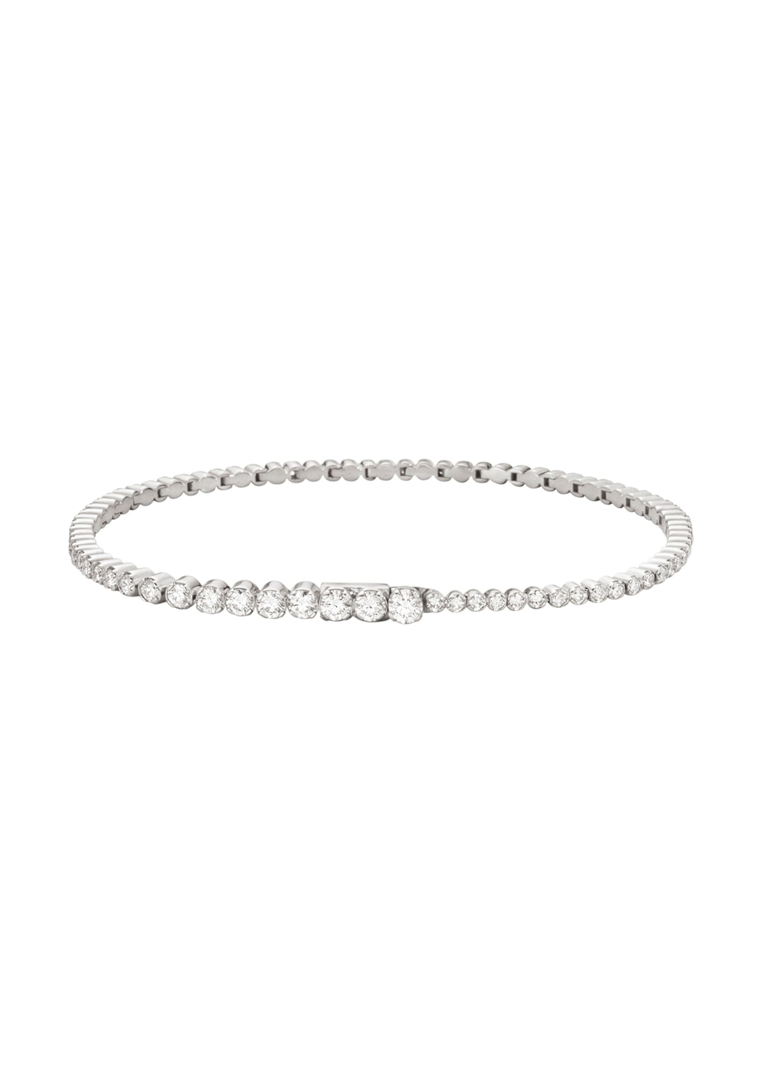 This Sophie Bille Brahe Tennis Bracelet features diamonds graduating in size, set in 18K white gold. With a total of 1.90 carats of Top Wesselton VVS diamonds, it adds a touch of luxury and timeless elegance to any wrist. Perfect for both day and evening wear.