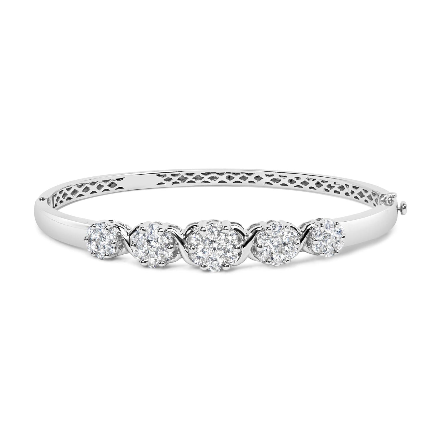 14K White Gold 2 1/2 Cttw Diamond Graduating Floral Cluster Bangle Bracelet (H-I Color, SI1-SI2 Clarity) - Fits Wrists up to 7.25'