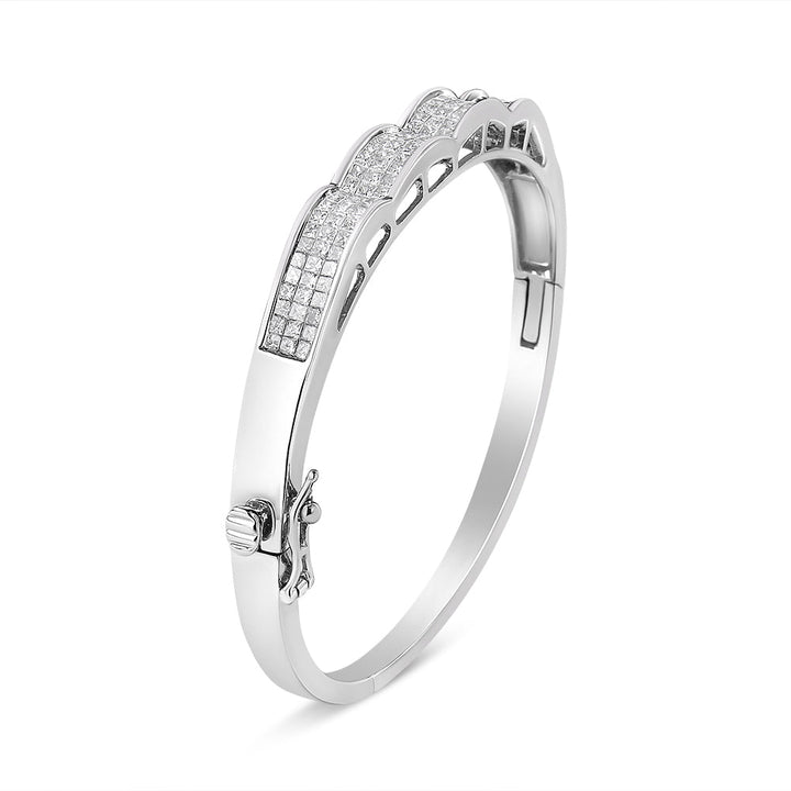 14K White Gold 3 1/3 Cttw Invisible Set Princess-Cut Diamond Wave Bangle Bracelet (H-I Color, SI1-SI2 Clarity) - Size 7'