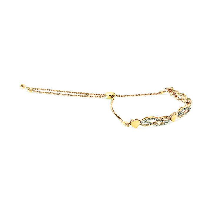 14K Yellow Gold Plated .925 Sterling Silver 1/10 Cttw Diamond Wave and Hearts Bolo Bracelet (I-J Color, I2-I3 Clarity) - 4'-10' Adjustable