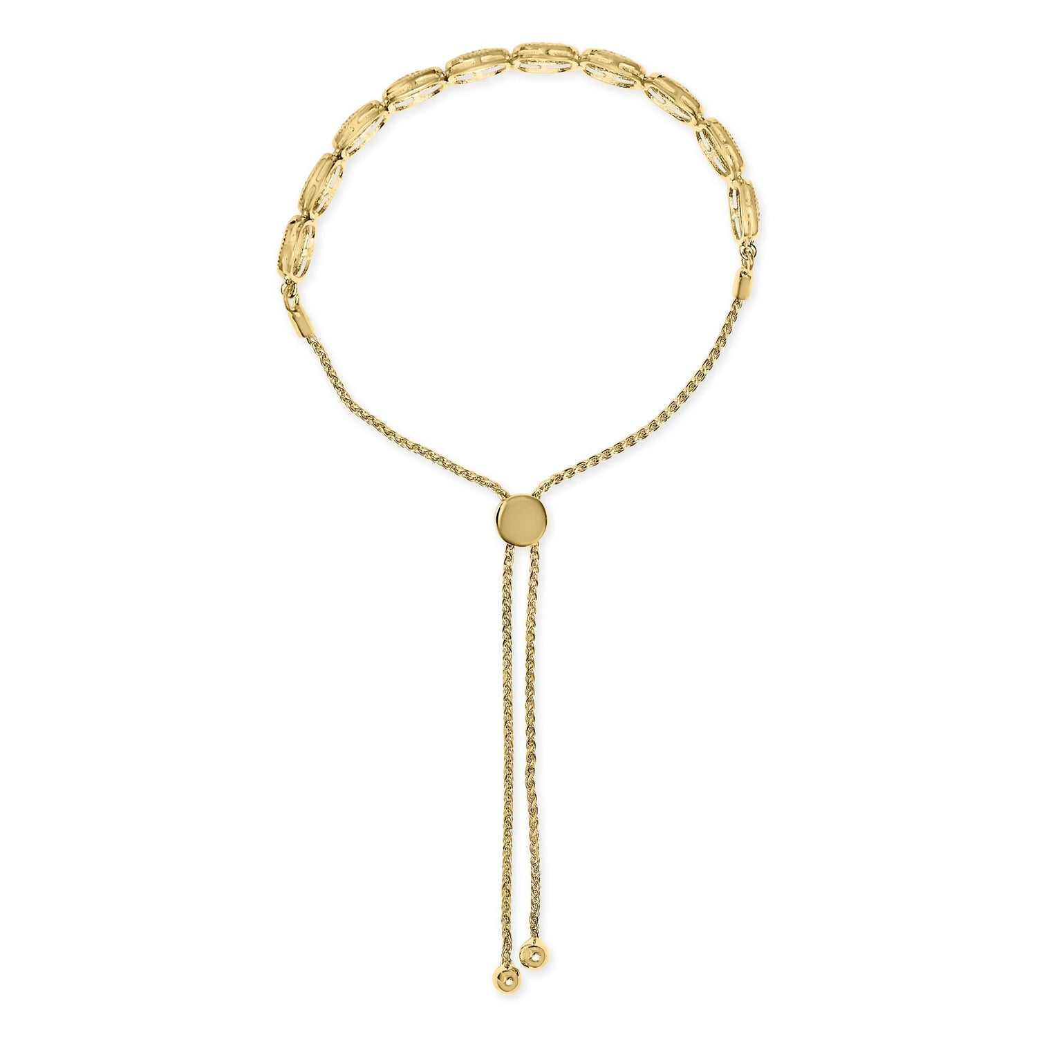 This Adjustable Bolo Bracelet by Haus of Brilliance radiates timeless charm with a contemporary twist. Crafted in sterling silver with a warm 14K yellow gold plating, the bracelet features ten cushion-shaped links, each intricately detailed with composite diamond clusters framed in double milgrain borders. The bolo clasp offers a custom fit from 4 to 10 inches, making this bracelet as versatile as it is beautiful.