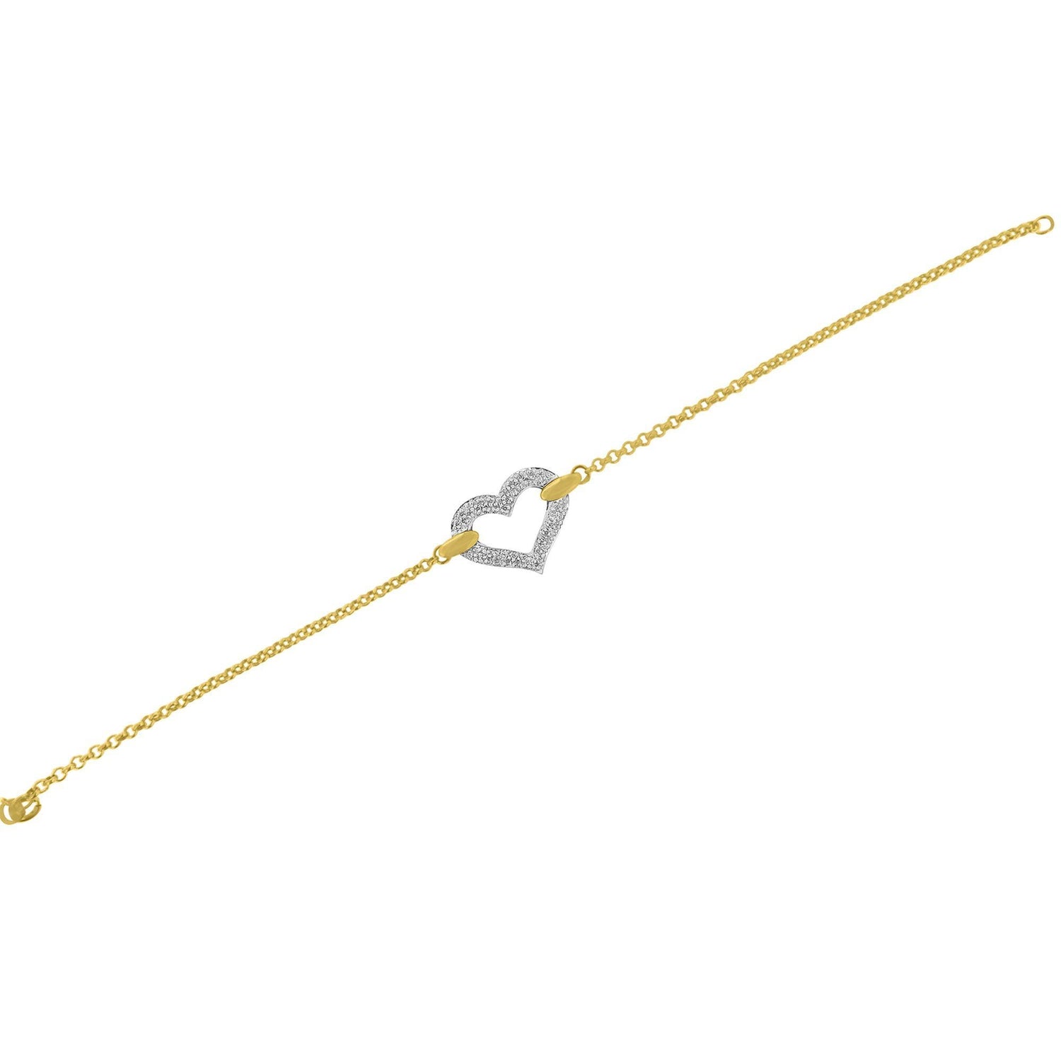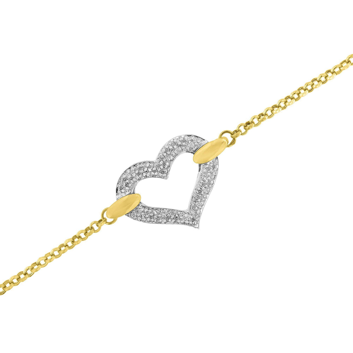 10K Two Tone Gold 1/4 Cttw Diamond Encrusted Heart Charm 7' Bracelet (H-I Color, I1-I2 Clarity)