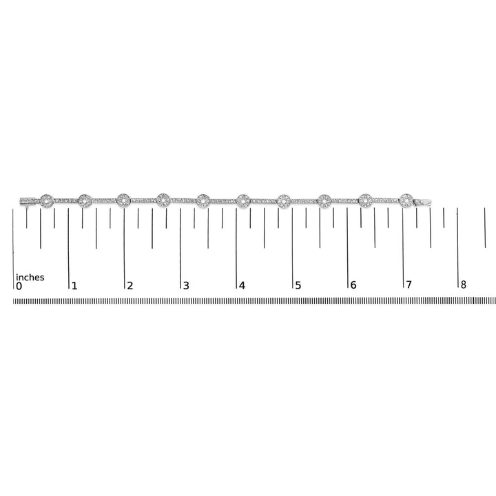 The 14k White Gold 1/2 Cttw Pave Diamond Bar and Hoop 7' Bracelet by Haus of Brilliance offers a harmonious blend of open circle hoops and horizontal bars, all adorned with 1/2 carat of natural diamonds. The diamonds, featuring H-I color and I1-I2 clarity, reflect light with every movement. The bracelet is secured with a box clasp and latch for durability and comfort. Perfect for both casual and formal occasions, this bracelet exemplifies grace and elegance.