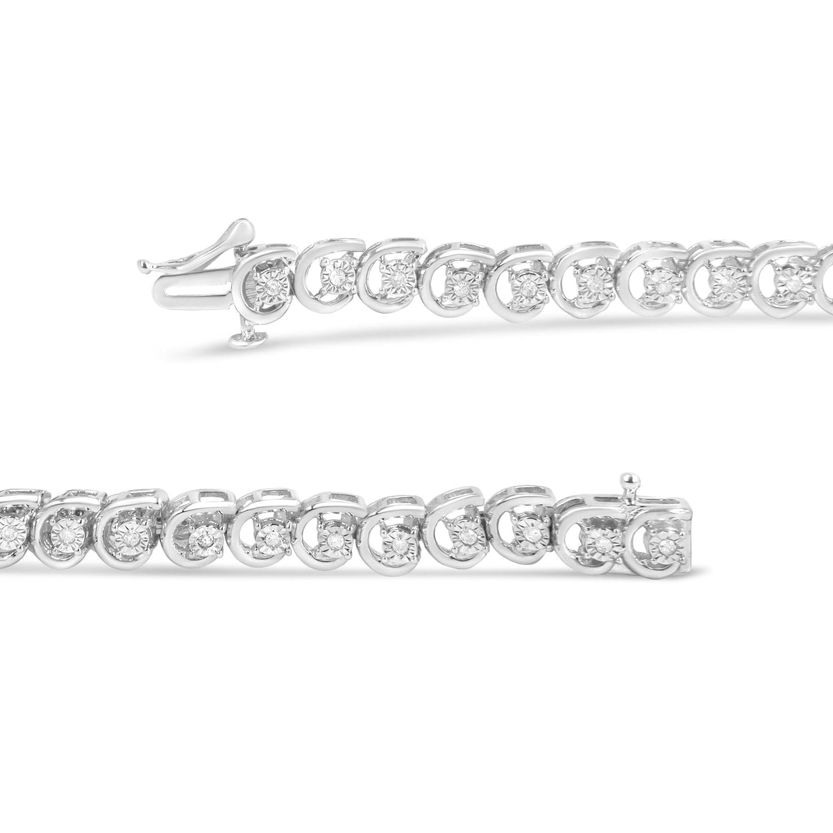 This .925 Sterling Silver 1/4 Cttw Diamond 'C' Link Bracelet by Haus of Brilliance is a beautiful piece crafted from rhodium-plated sterling silver. Each 'C' shaped link is adorned with diamonds, totaling 1/4 carat, with I-J color and I2-I3 clarity. The miracle-set diamonds amplify the brilliance and sparkle, making this bracelet an exquisite addition to any collection. The bracelet, measuring 7.25 inches, is secured with a box clasp and safety latch for added security.