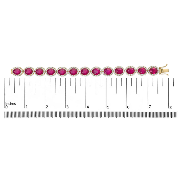 14K Yellow Gold 6 2/5 Cttw Diamond and 34.0 Cttw Oval Red Ruby Halo Link Bracelet (I-J Color, SI1-SI2 Clarity) - 7.25' Inches