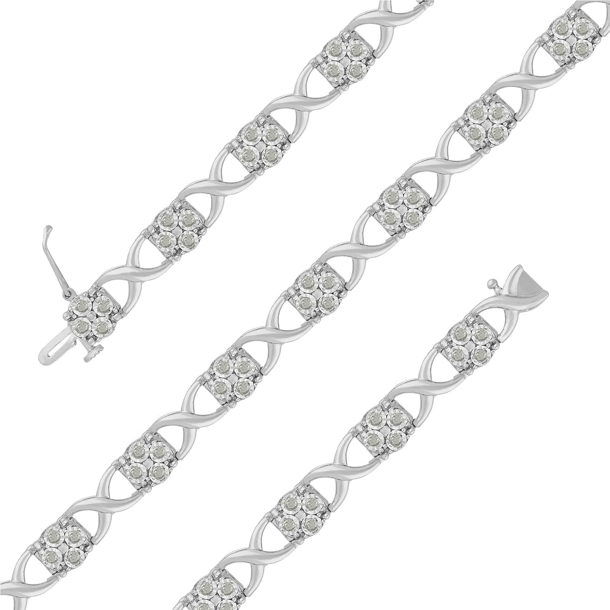 Sterling Silver Rose-Cut Diamond Love Locks Link Bracelet (1.00cttw,I-J color,I3-Promo clarity)