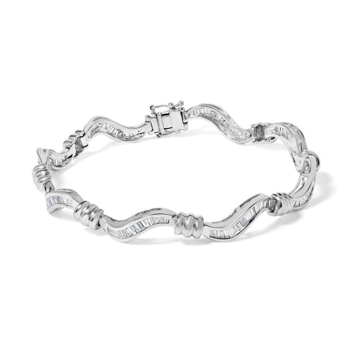14K White Gold 2.00 Cttw Baguette-Cut Spiral Link 7' Bracelet (G-H Color, SI1-SI2 Clarity)