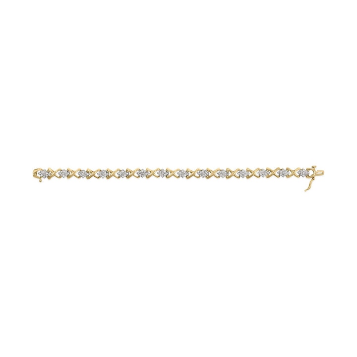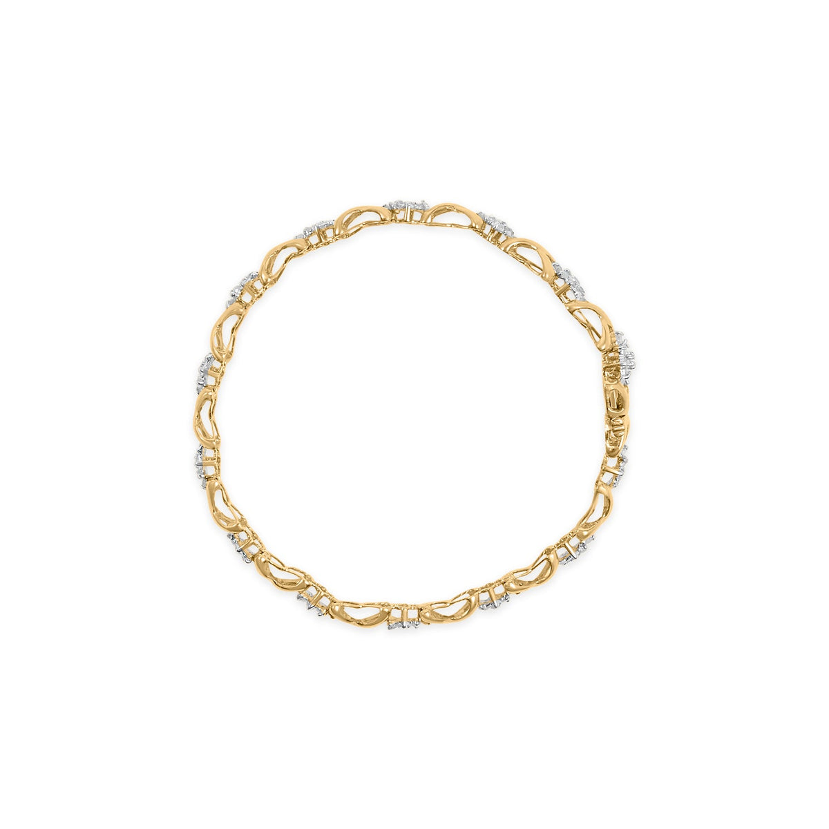 This 10K Yellow Gold Plated .925 Sterling Silver 2.00 Cttw Diamond Link Bracelet by Haus of Brilliance is a statement in enduring elegance and radiant sparkle. Featuring alternating 'X' and diamond cluster links, this 7-inch bracelet boasts 2.00 carats of round-cut natural diamonds that shimmer with every movement. The yellow gold plating brings a touch of warmth, while the structured pattern evokes a classic sophistication. Designed to impress on any occasion, it secures with a box and latch clasp for worry-free wear.