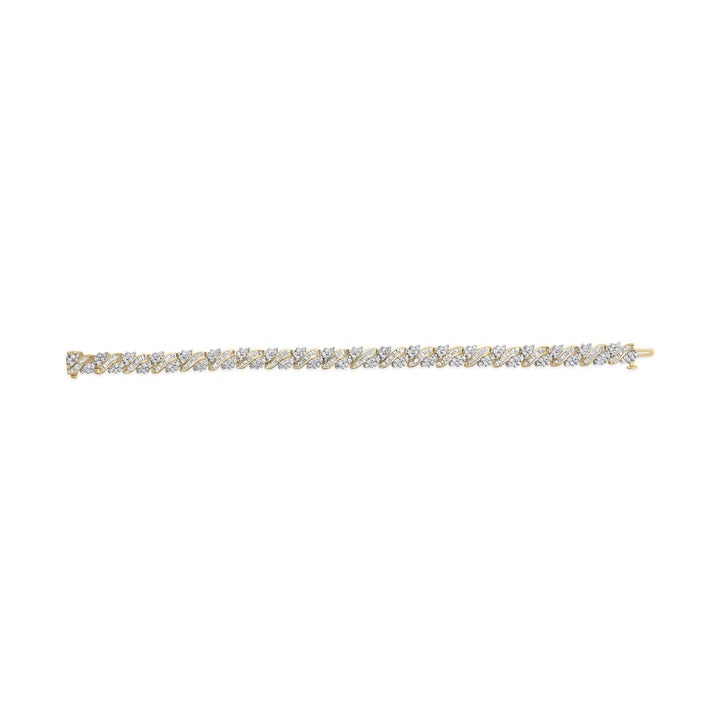 14K Yellow Gold 4.00 Cttw Diamond Woven Composite Cluster and S-Link Bracelet (I-J Color, I1-I2 Clarity) - 7' Inches