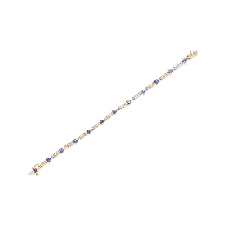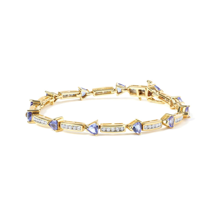 14K Yellow 5MM Trillion Cut Blue Tanzanite and 1 1/10 Cttw Diamond Tennis 7' Inches Bracelet (H-I Color, I1-I2 Clarity)