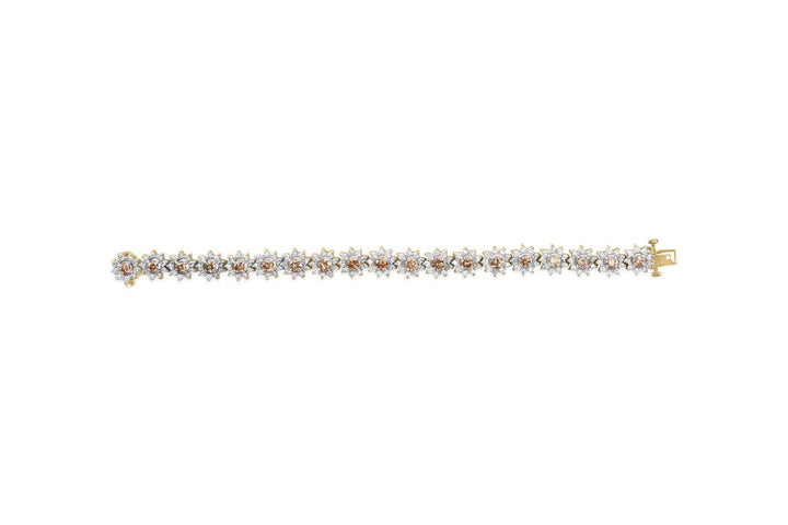 14K Yellow Gold 8.00 Cttw Champagne Diamond Floral Cluster Halo Link Bracelet (H-I Color, I1-I2 Clarity)