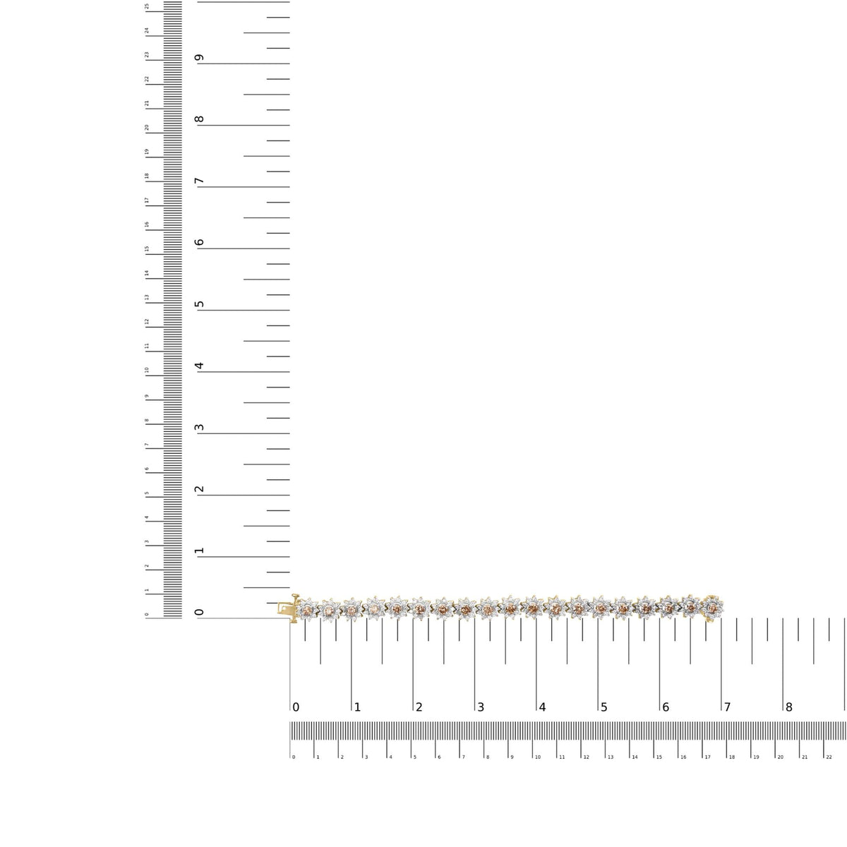 This 14K Yellow Gold 8.00 Cttw Champagne Diamond Floral Cluster Halo Link Bracelet by Haus of Brilliance features 190 round champagne diamonds totaling 8.00 Cttw. The floral cluster design enhances the brilliance of the diamonds, while the prong setting ensures maximum sparkle. The box clasp ensures a secure fit, while the luxurious 14K yellow gold metal adds opulence.