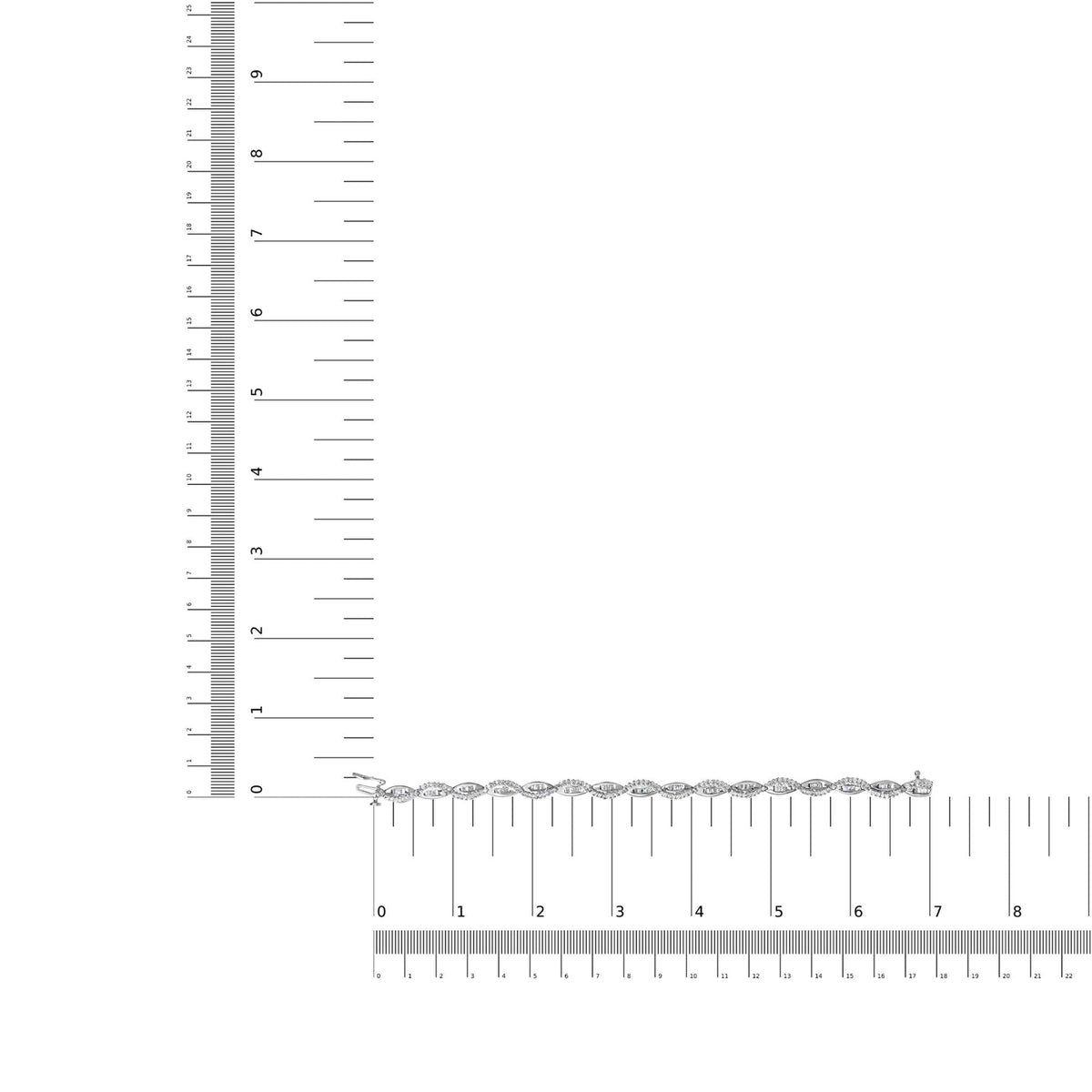 Handcrafted in 14K white gold with 2.00 Cttw round and baguette diamonds (I-J color, I2-I3 clarity). Bracelet measures 7' and is secured with a box clasp.