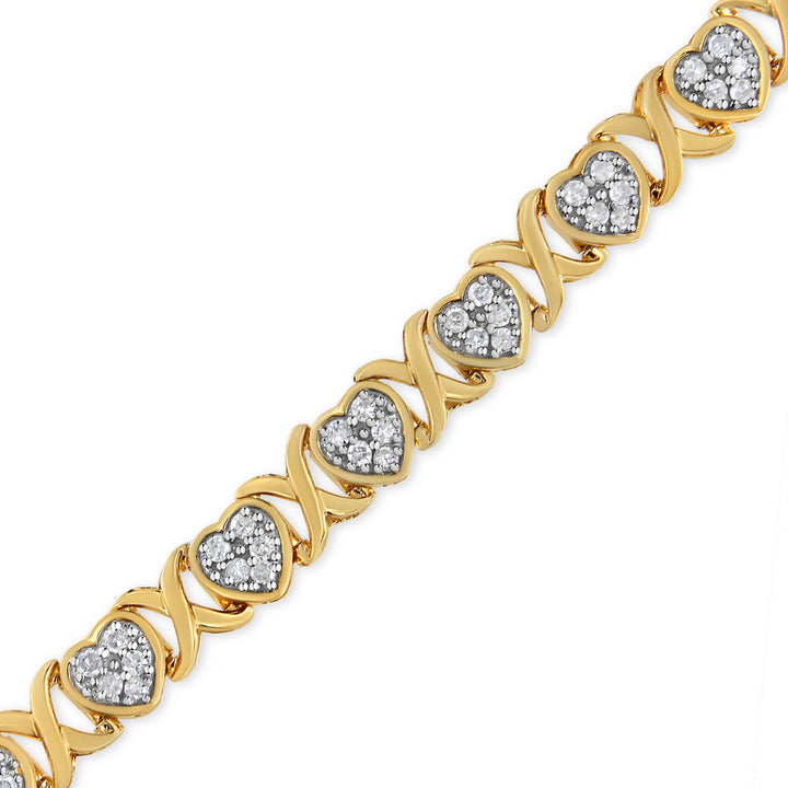 14KY Yellow Gold Plated .925 Sterling Silver 1.00 Cttw Diamond Heart and X Link Bracelet (I-J Color, I3 Clarity) - 7.25' Inches