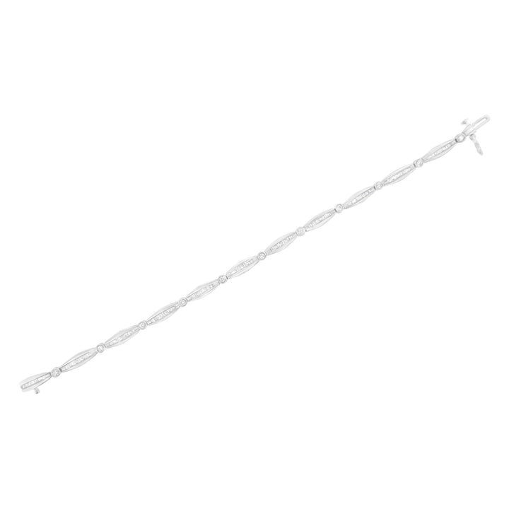 14K White Gold 1-1/2 Cttw Round Brilliant-Cut & Baguette Cut Diamond Bezel and Tapered Link 7' Tennis Bracelet (H-I Color, I1-I2 Clarity)