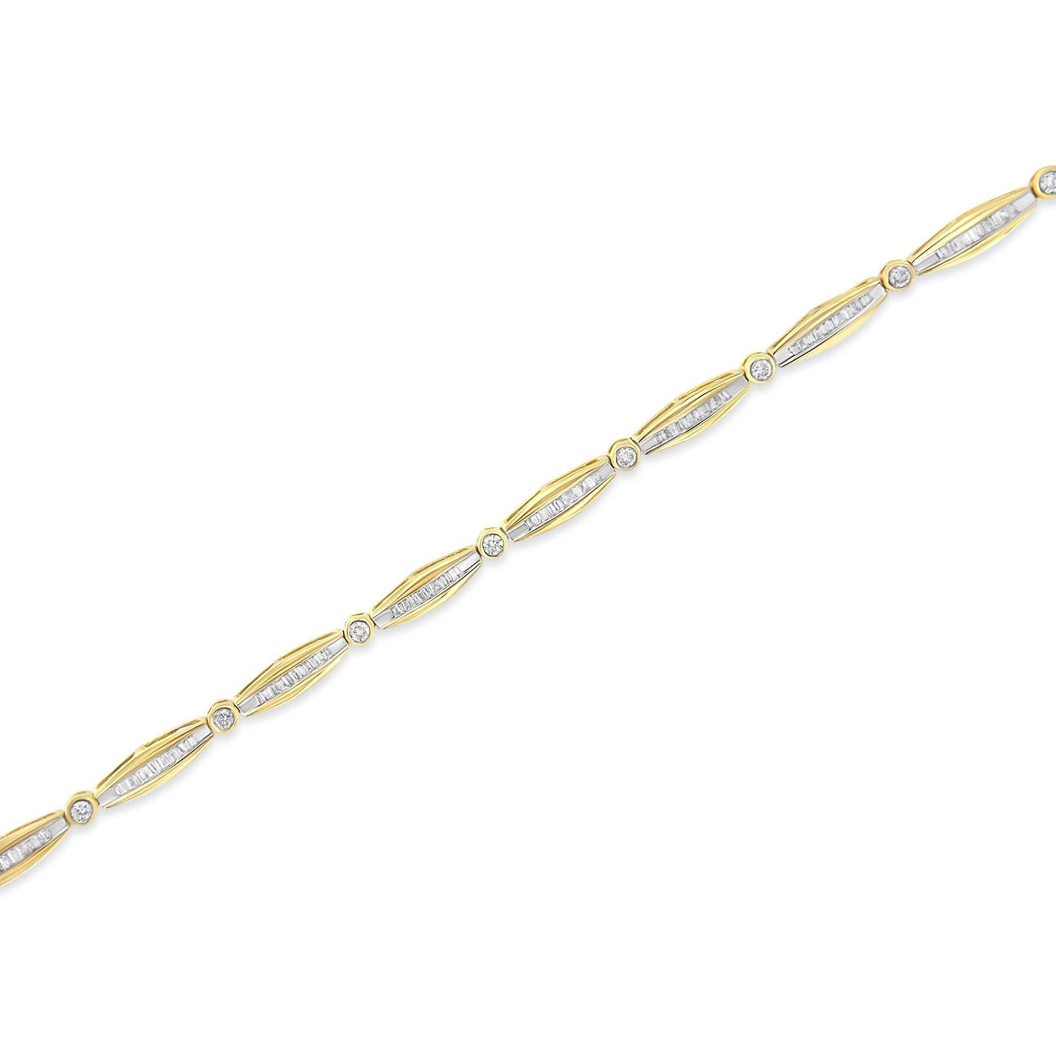 14K Yellow Gold 1-1/2 Cttw Round Brilliant-Cut & Baguette Cut Diamond Bezel and Tapered Link 7' Tennis Bracelet (H-I Color, I1-I2 Clarity)