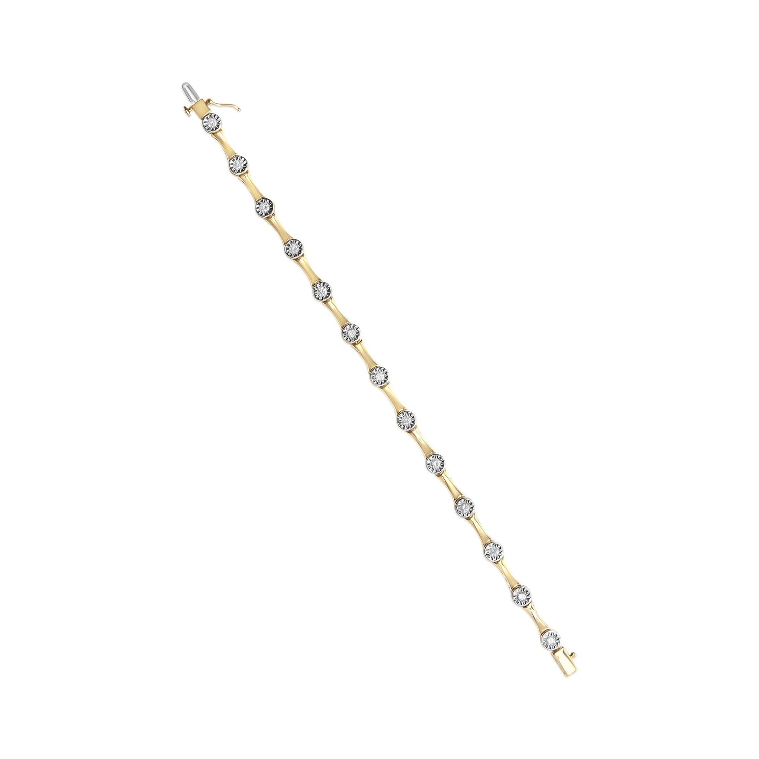 Crafted in 10K yellow gold-plated .925 sterling silver with 1.00 cttw of round miracle-set diamonds. H-I color, I3 clarity. 7' length. Box clasp closure.