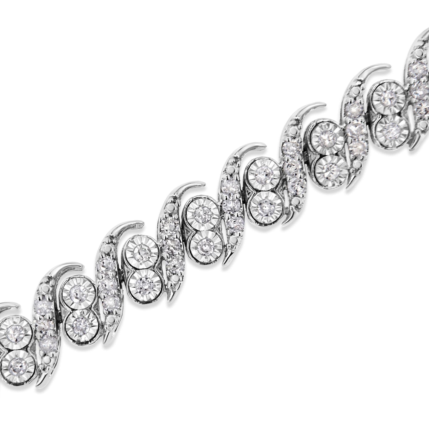 .925 Sterling Silver 2.0 Cttw Round-Cut Diamond 'S' Link Bracelet (I-J Color, I3 Clarity) - 7.25'