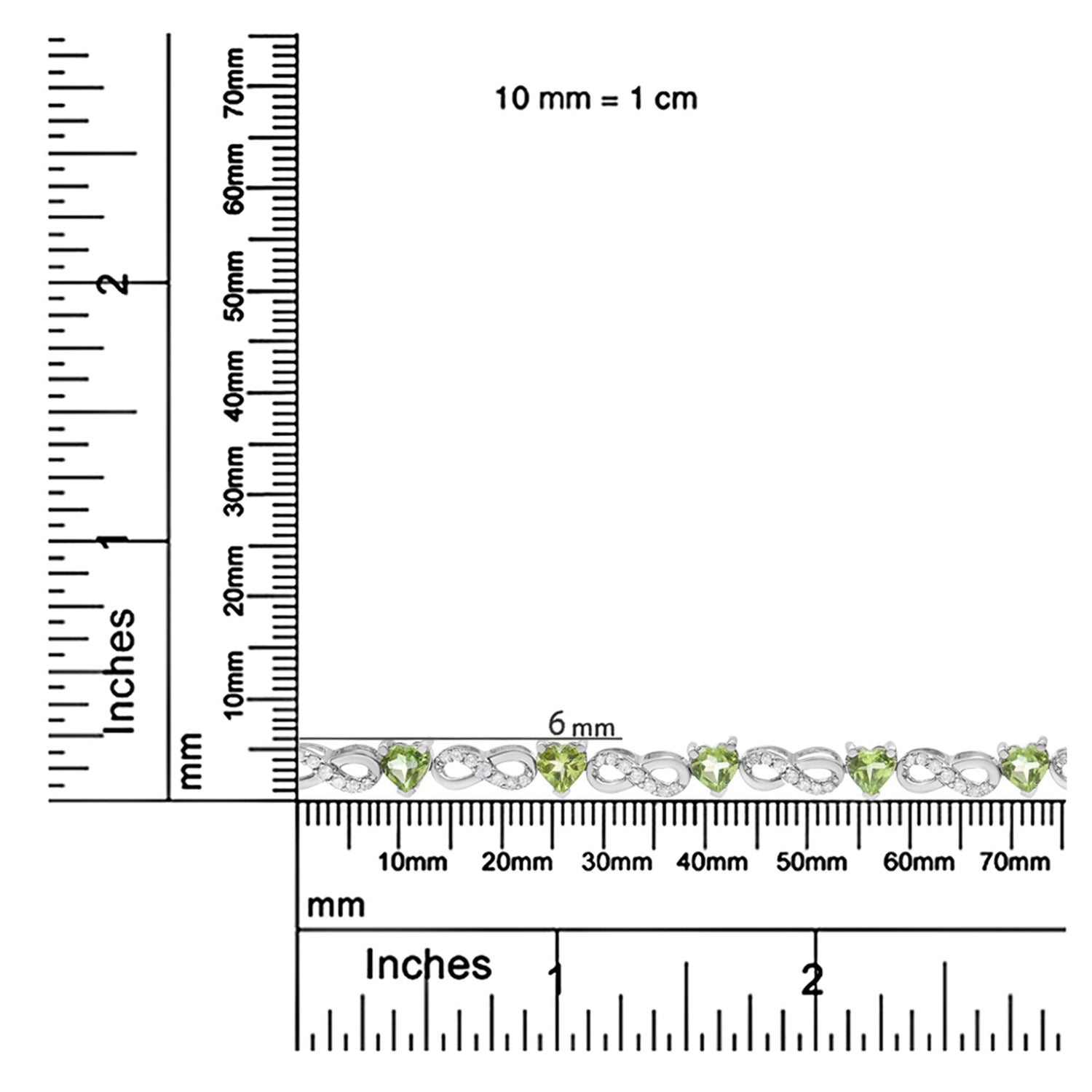 .925 Sterling Silver 1.00 Cttw Diamond and 4.00mm Lab Created Green Heart-Shaped Peridot Infinity Link Bracelet (I-J Color, I2-I3 Clarity) - 7.25'