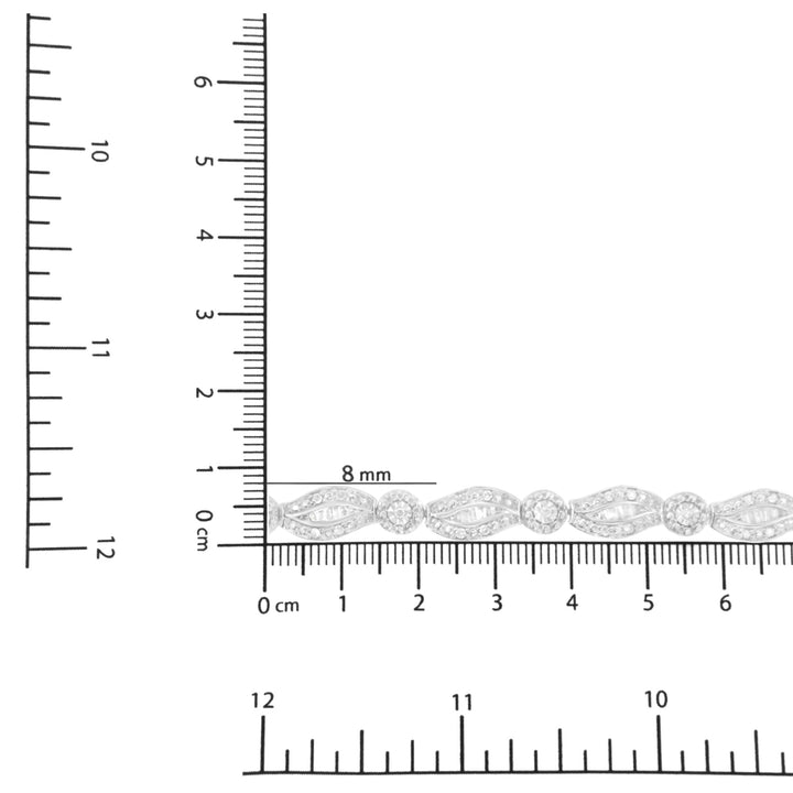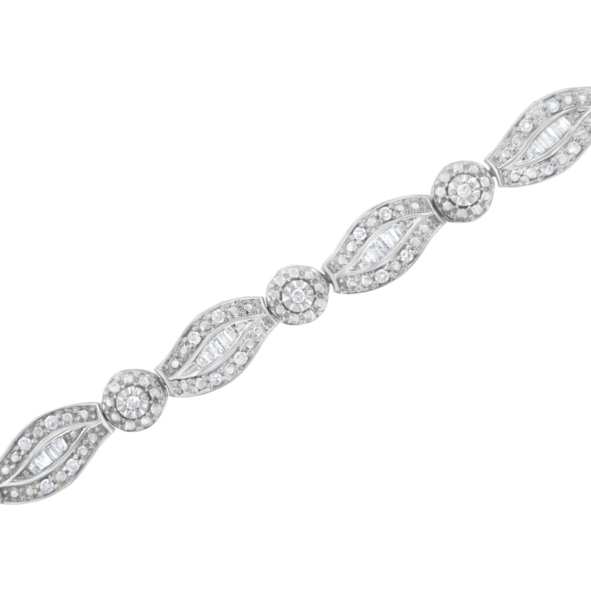 Crafted in rhodium-plated .925 sterling silver with round and baguette-cut diamonds totaling 1.0 cttw (I-J color, I2-I3 clarity). Length: 7.25'.