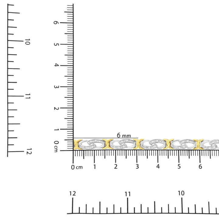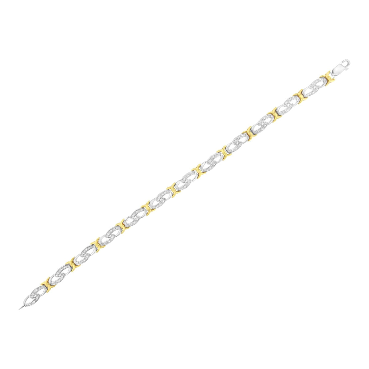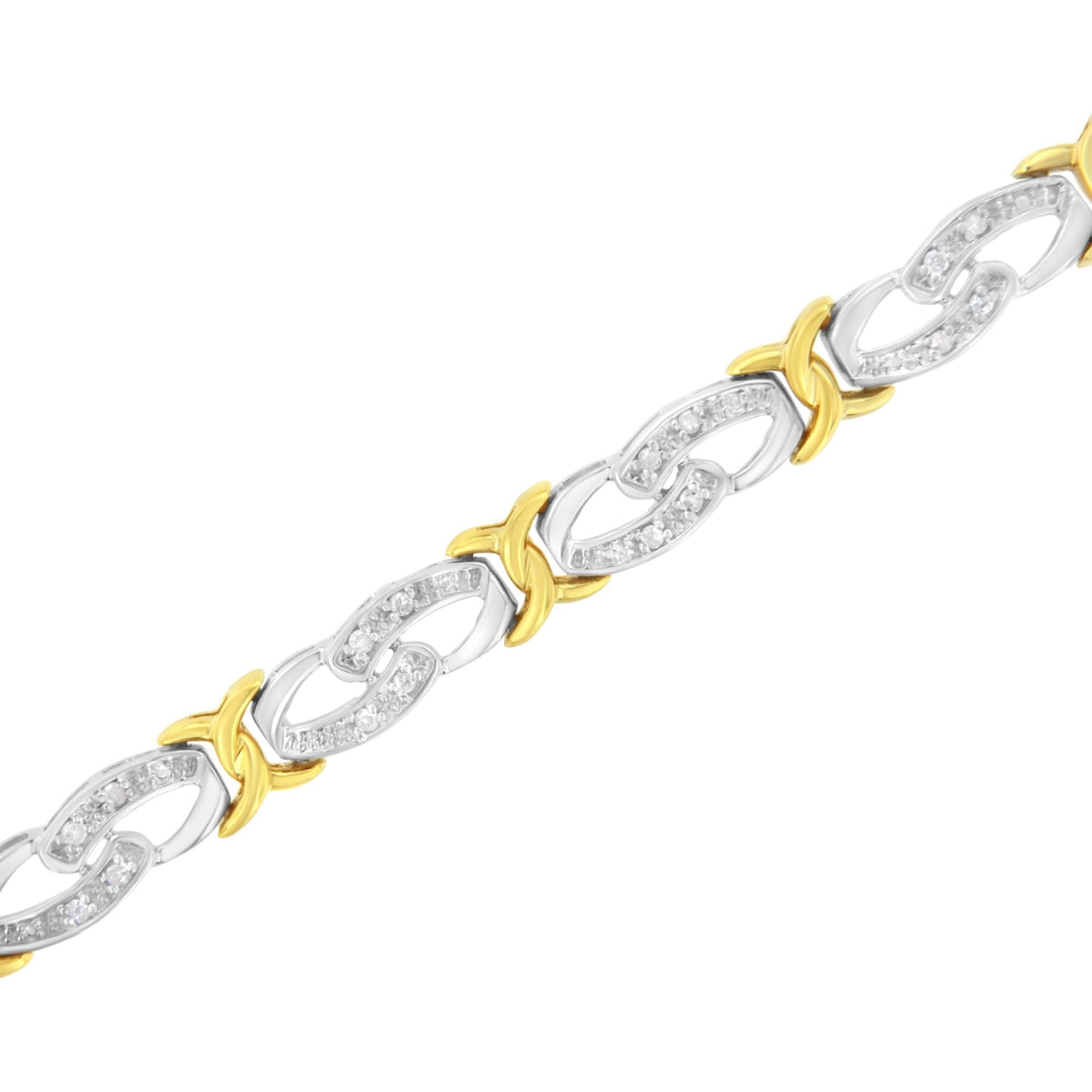 This 10K Yellow Gold Plated Sterling Silver 1/4 Cttw Diamond Infinity and X Link Bracelet by Haus of Brilliance combines elegance and modern design. The bracelet features X-shaped yellow gold links alternating with silver bypassing ribbons accented with round-cut diamonds. A perfect piece to wear for both formal and casual occasions.