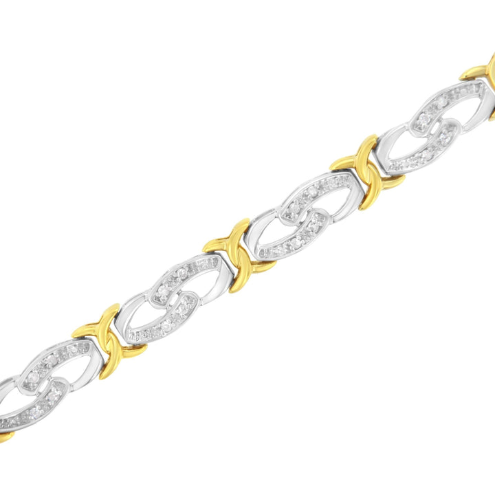 10k Yellow Gold Plated Sterling Silver 1/4 cttw Diamond Infinity and X Link Bracelet (I-J Clarity, I2-I3 Color) - Size 7.25'