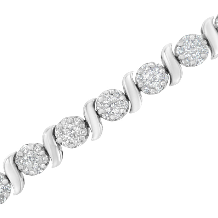 14K White Gold 5 1/4 cttw Diamond S-Link Floral Cluster Tennis Bracelet (I-J Clarity, SI2-I1 Color) - Size 7'