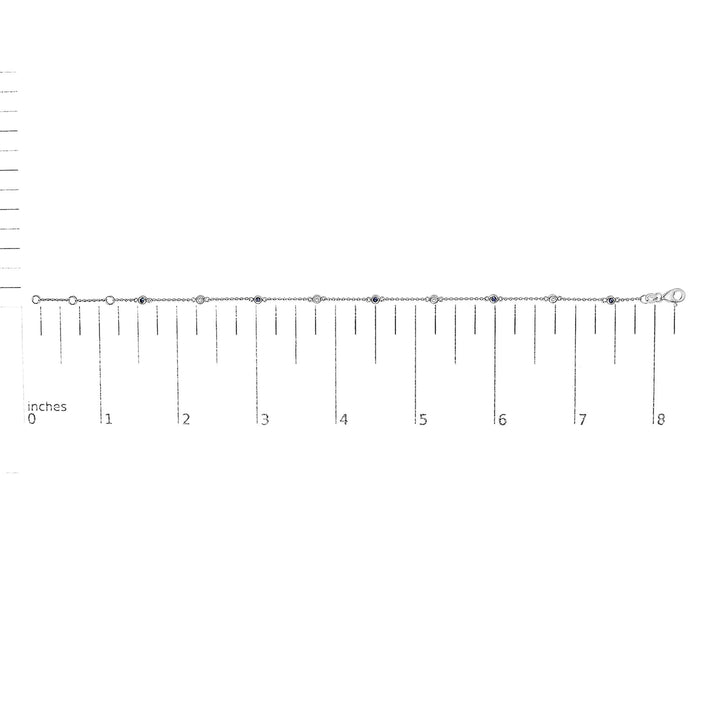 14K White Gold Alternating Blue Sapphire and White Diamond Bezel Station Chain Bracelet (I-J Color, SI2-I1 Clarity) - 8' Inches