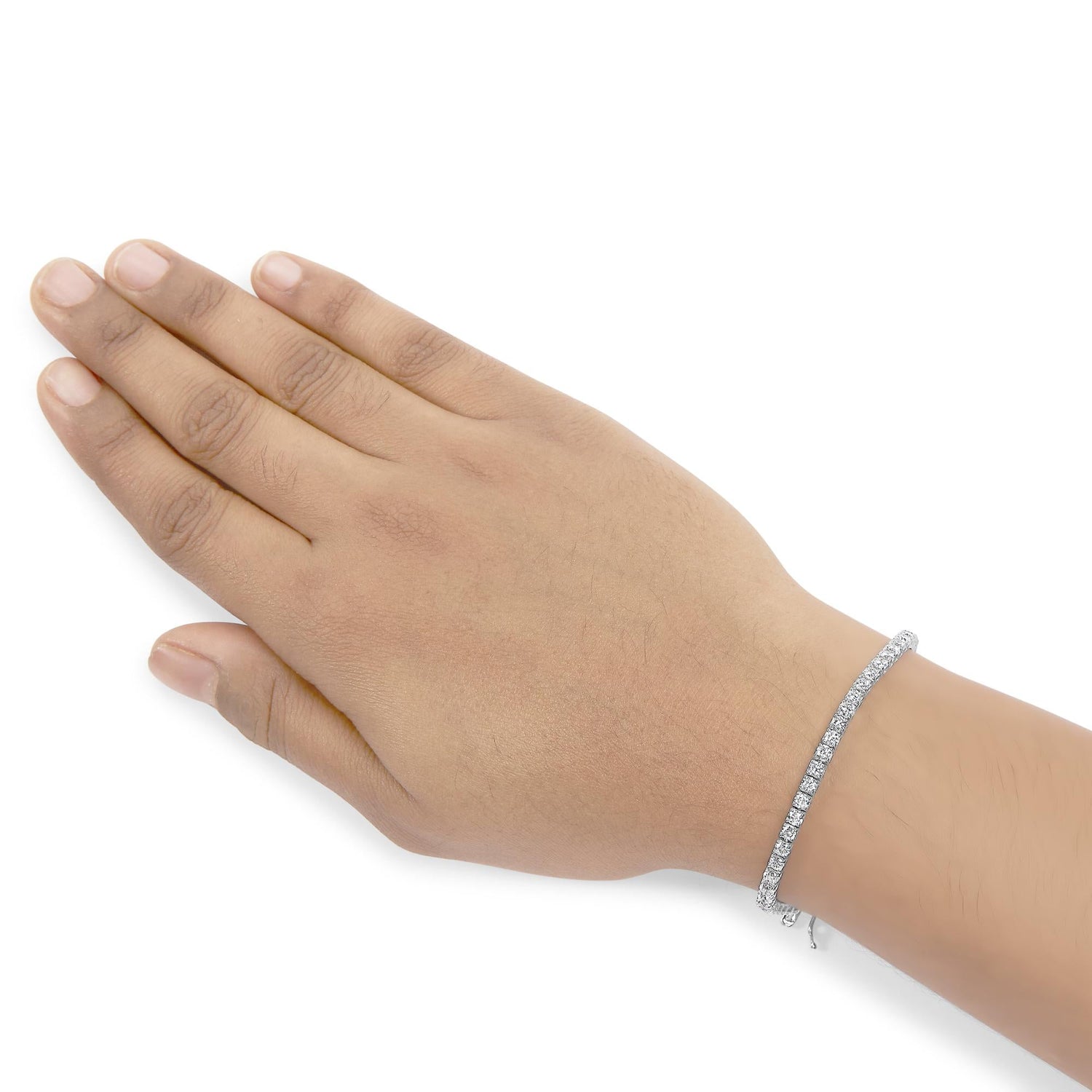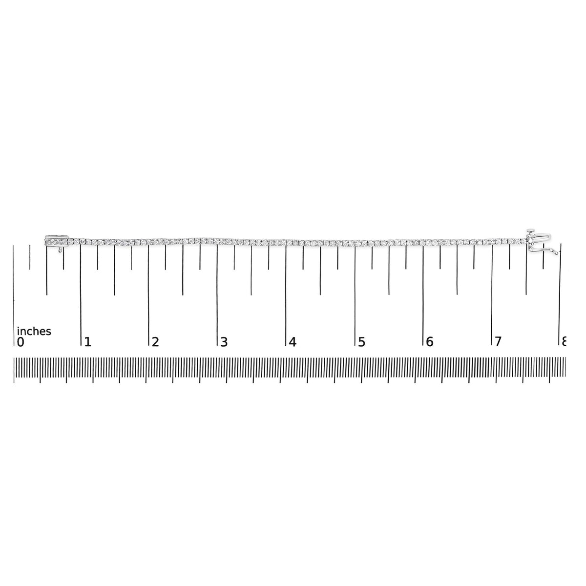 Crafted in 14K white gold. Set with 4.0 cttw of round lab-grown diamonds (F-G color, VS2-SI1 clarity). Features 67 diamonds. Measures 7 inches. Secured with box clasp and safety latch.