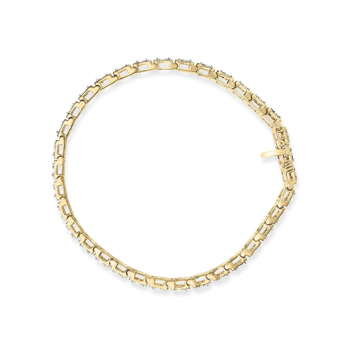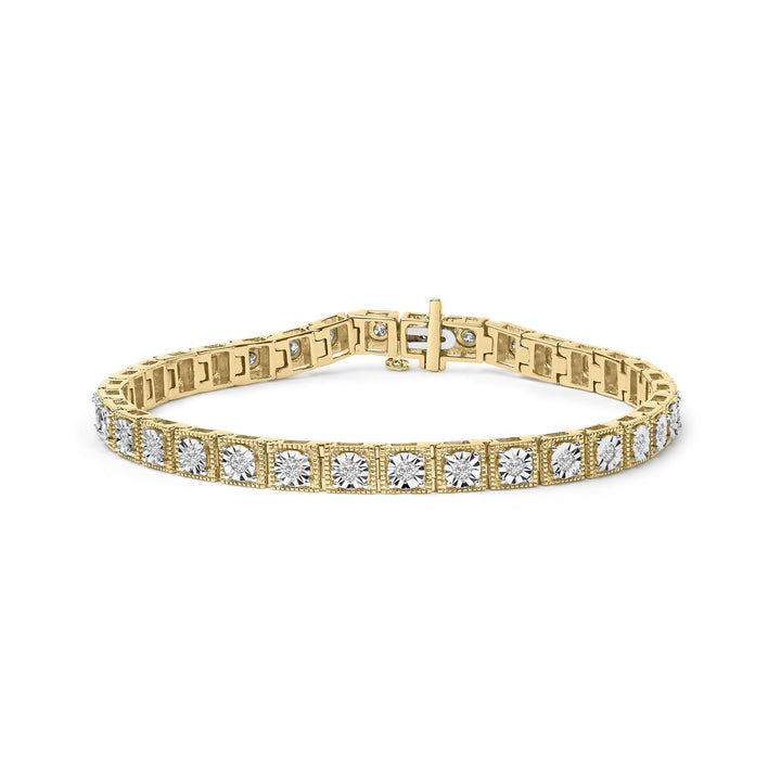 14K Yellow Gold Plated .925 Sterling Silver 1.0 Cttw Miracle Set Diamond Milgrain Link Tennis Bracelet (I-J Color, I2-I3 Clarity) - 7' Inches