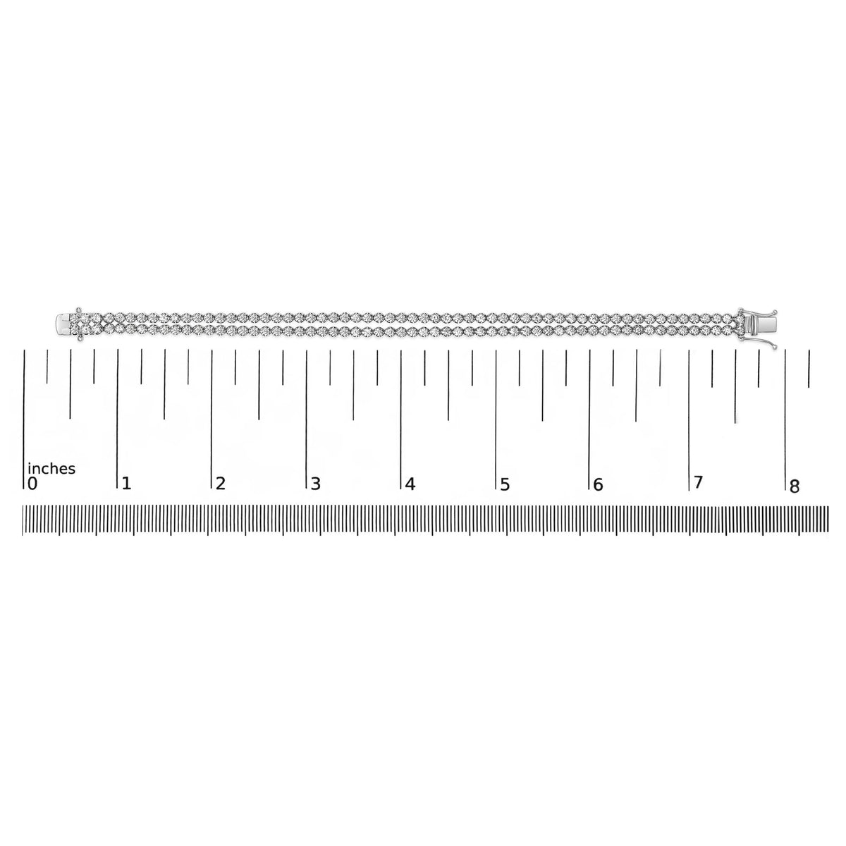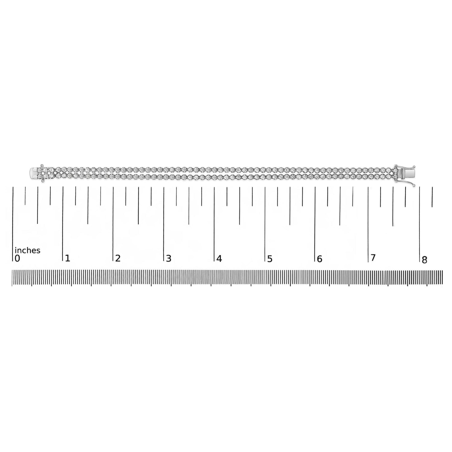 This 18K White Gold 5 3/5 Cttw Natural Diamond Double Row Link Tennis Bracelet by Haus of Brilliance is a luxurious and elegant piece, adorned with 5 3/5 carats of diamonds. The double-row design and rhodium-plated finish ensure an unforgettable shine.