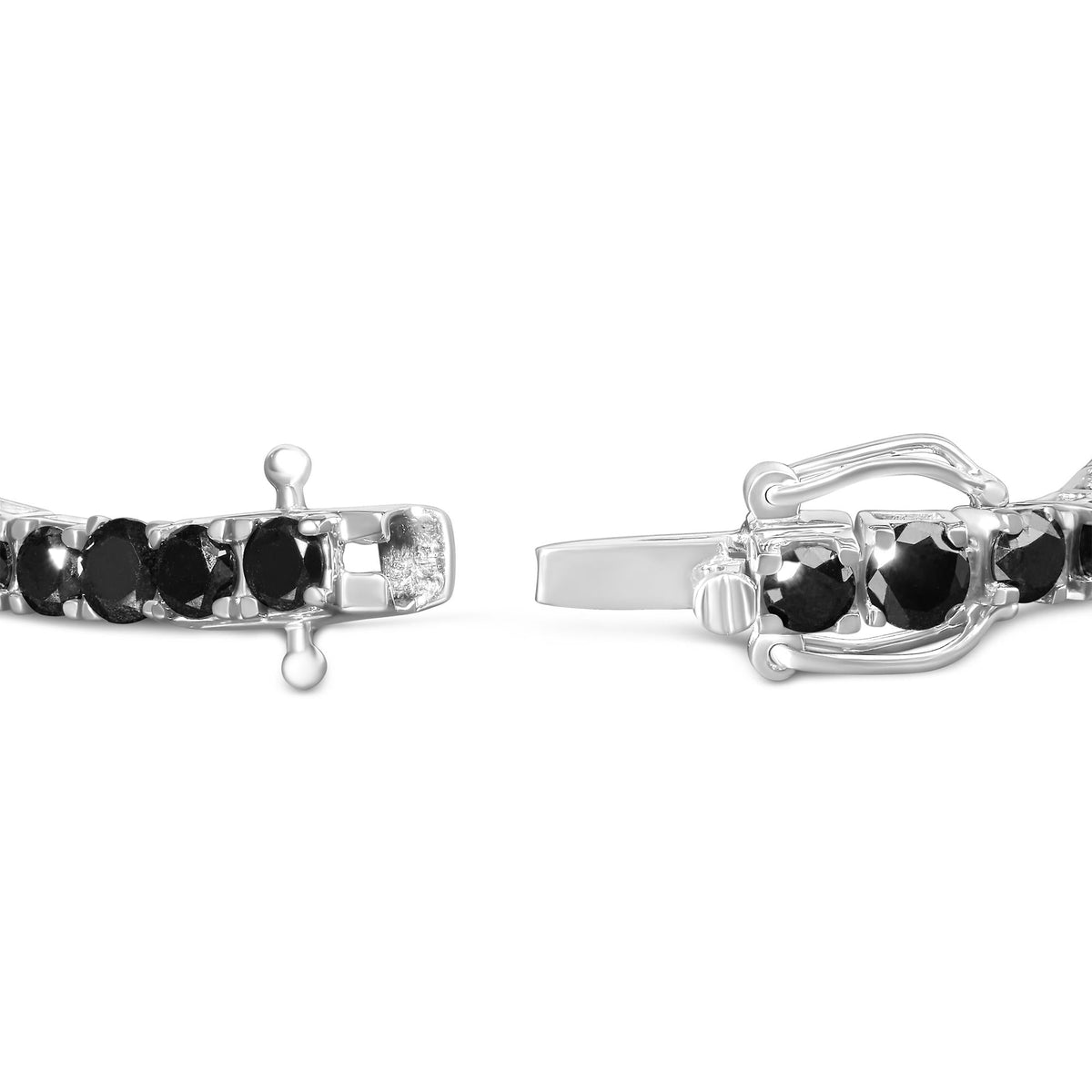 Crafted in .925 sterling silver with 67 treated round-cut black diamonds totaling 4.0 cttw (I2-I3 clarity). 4-prong settings. Measures 7.25' with box and tongue clasp plus safety latch.