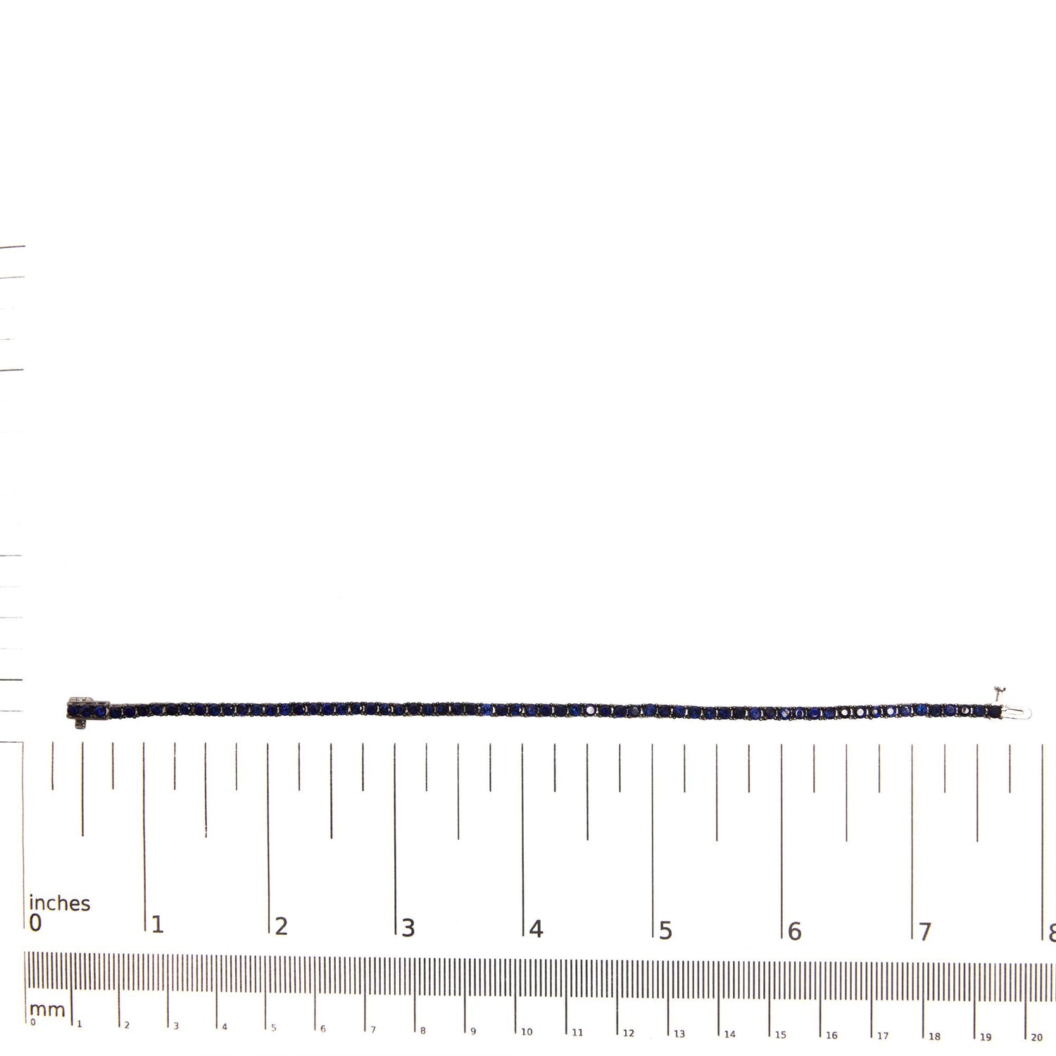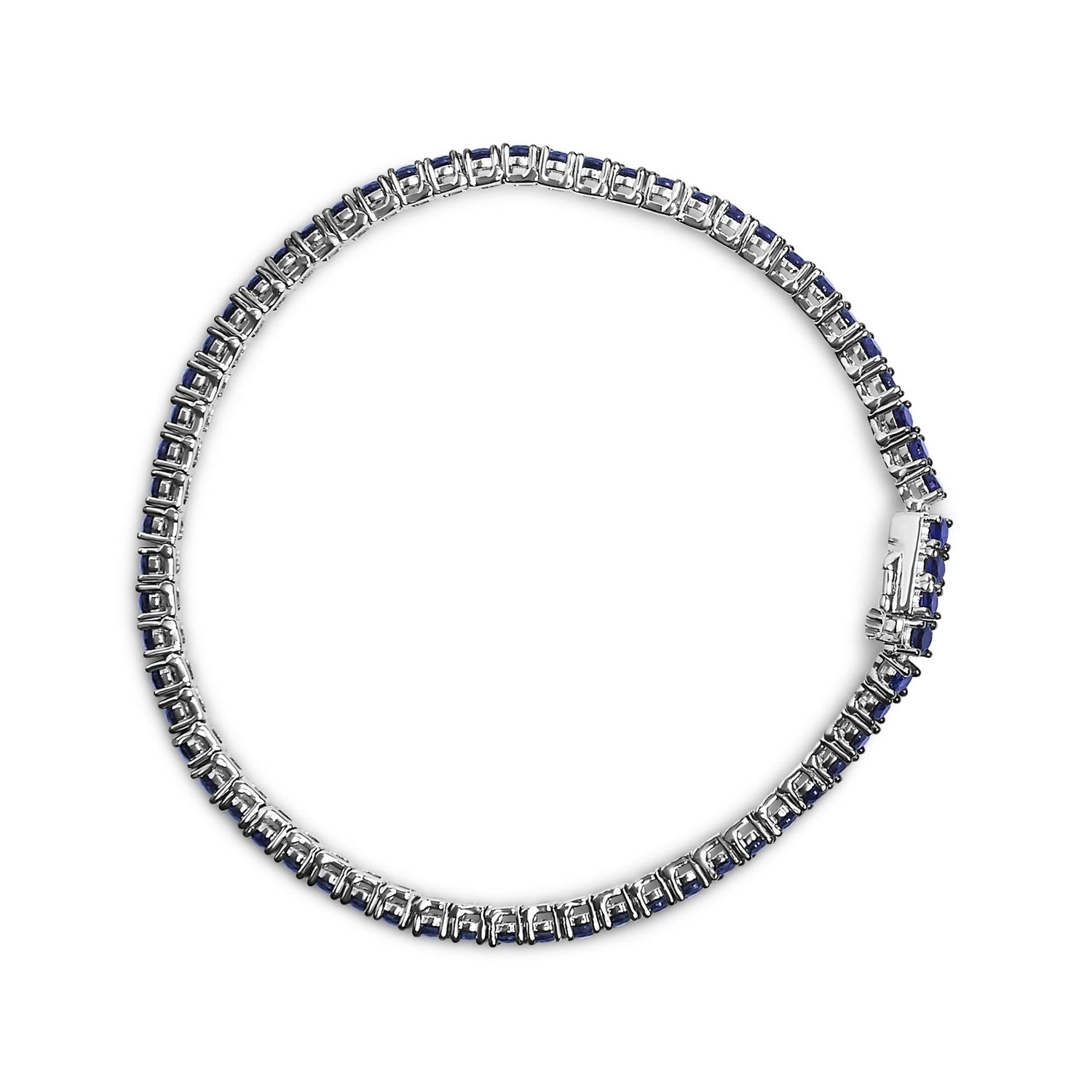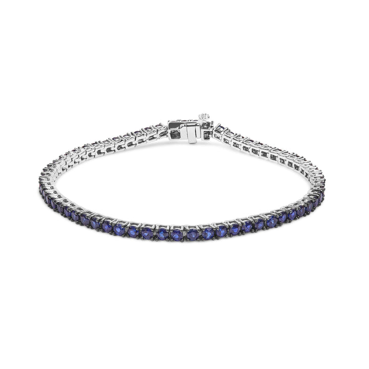 Crafted in rhodium-plated .925 sterling silver with 5 3/4 Cttw of created blue sapphires. 7.25" length with box clasp.