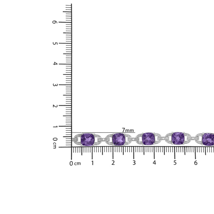 .925 Sterling Silver 7mm Cushion Cut Amethyst Gemstone and Diamond Tennis Link Bracelet (I-J Color, I1-I2 Clarity) - Size 7'