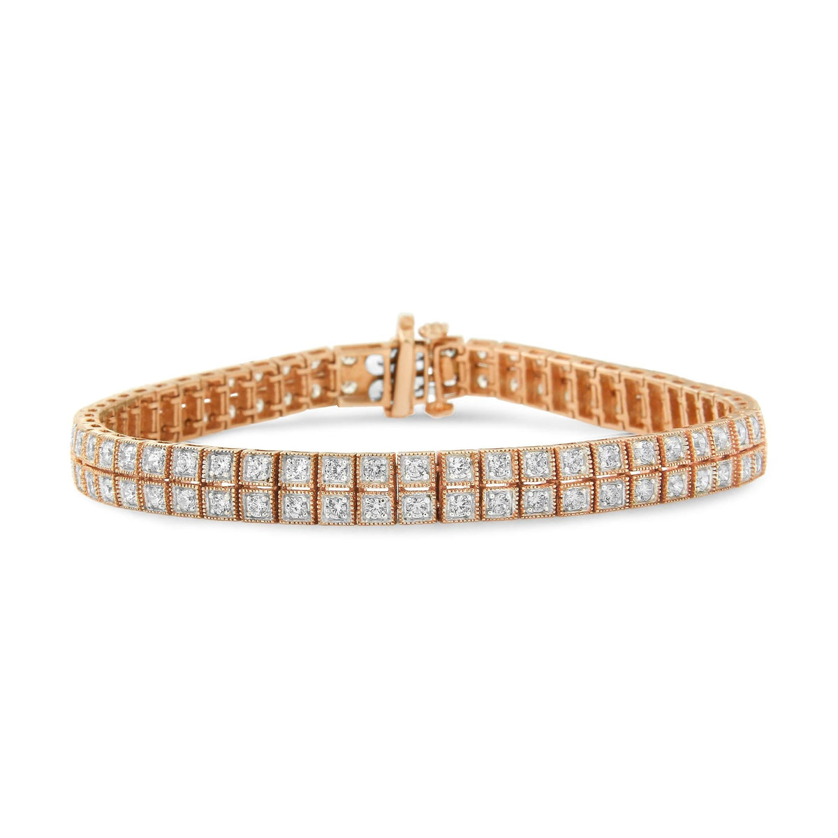 14K Rose Gold 3.0 Cttw Lab Grown Diamond Two Row Milgrain 7' Inch Tennis Bracelet (G-H Color, VS2-SI1 Clarity)
