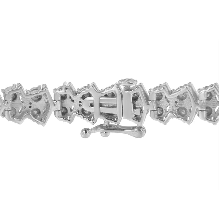 This .925 Sterling Silver 1.0 Cttw Diamond 'Arrow' Shape Tennis Link Bracelet by Haus of Brilliance channels sleek energy and symmetry. Designed with a repeating pattern of diamond pairs and angular arrow motifs, this piece evokes direction, clarity, and intention. A unique take on the classic tennis bracelet, it’s a contemporary staple for those who favor refined design with symbolic meaning.