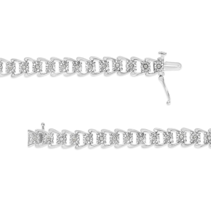 .925 Sterling Silver 1/2 Cttw Diamond Miracle-Set Double Swoosh Wave Style 7' Tennis Bracelet (I-J Color, I3 Clarity)