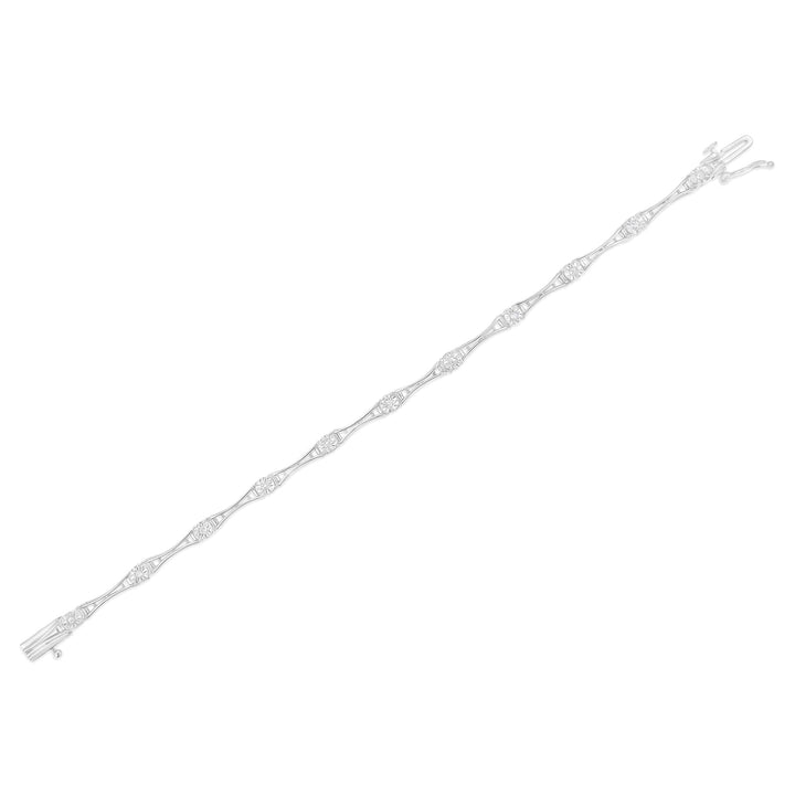 This .925 Sterling Silver 1/4 Cttw Diamond Flared-Bar Tennis Bracelet by Haus of Brilliance lends subtle sparkle and fluid design to the wrist. Featuring shimmering miracle-set round diamonds nestled between gracefully flared links, this bracelet is all about refined elegance. With its sleek 7-inch silhouette and secure clasp, it’s a versatile piece that transitions effortlessly from day to night. A beautiful gift or self-indulgent treat, it celebrates simplicity elevated by meticulous detail.