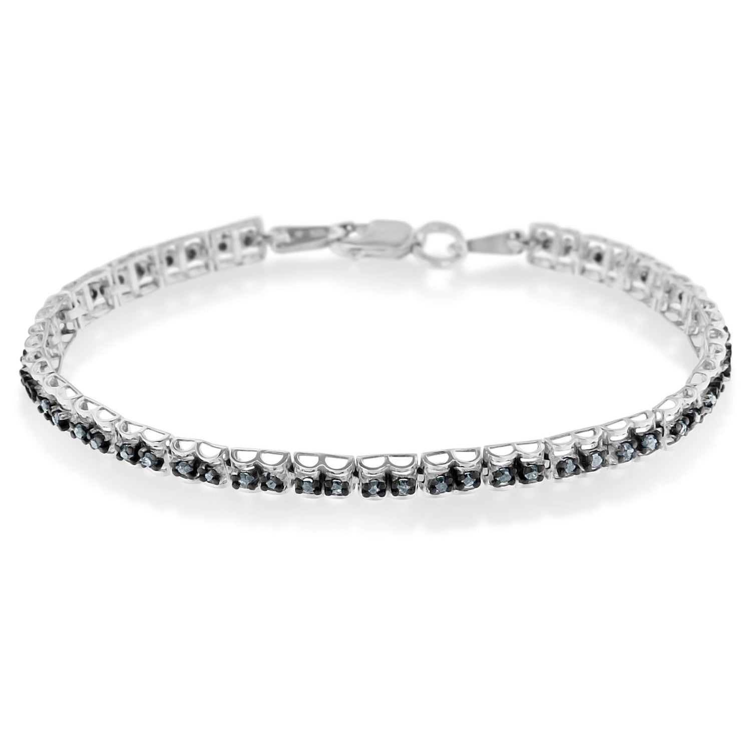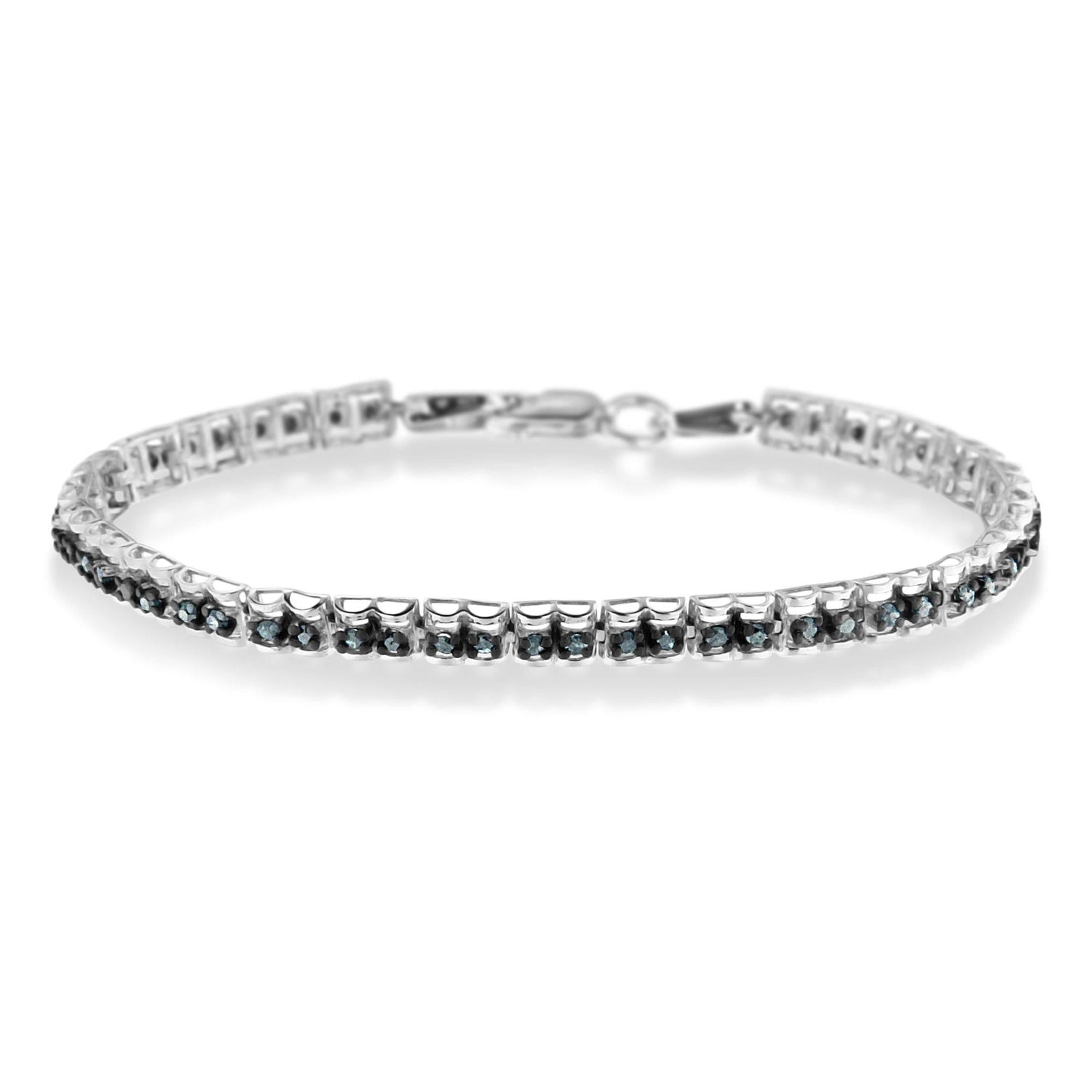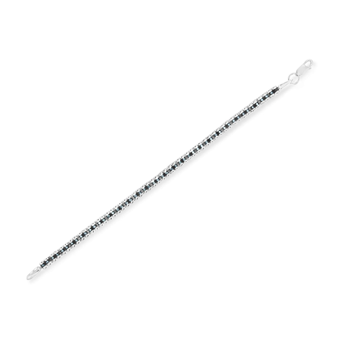 Crafted in black rhodium-plated .925 sterling silver with 52 treated blue rose-cut natural diamonds totaling 1.00 carat (I1-I2 clarity). Measures 7 inches with lobster clasp closure.