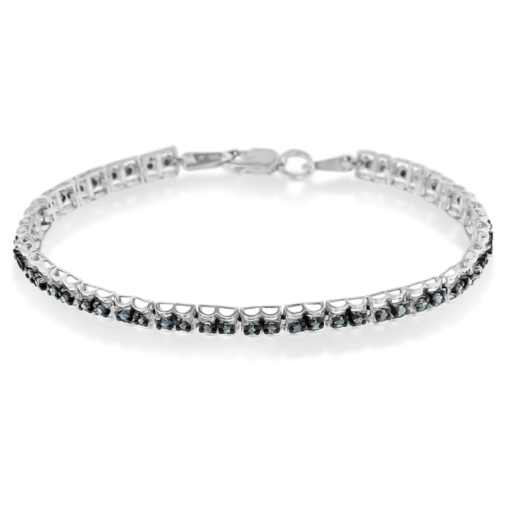 Black Rhodium over .925 Sterling Silver 1.0 Cttw Rose Cut Diamond Double-Link 7' Tennis Bracelet (Blue Color, I1-I2 Clarity)